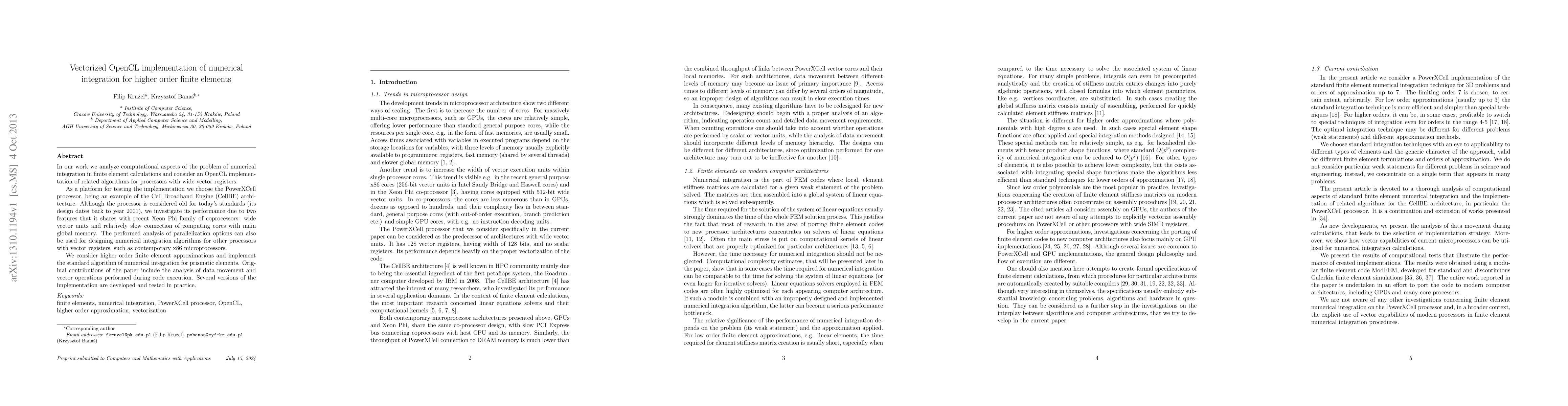 This paper explores the vectorized OpenCL implementation of numerical integration algorithms for higher-order finite elements on the PowerXCell processor, leveraging its wide vector registers. The study assesses its performance and parallelization options, which are relevant for modern processors like the Xeon Phi family and contemporary x86 microprocessors.