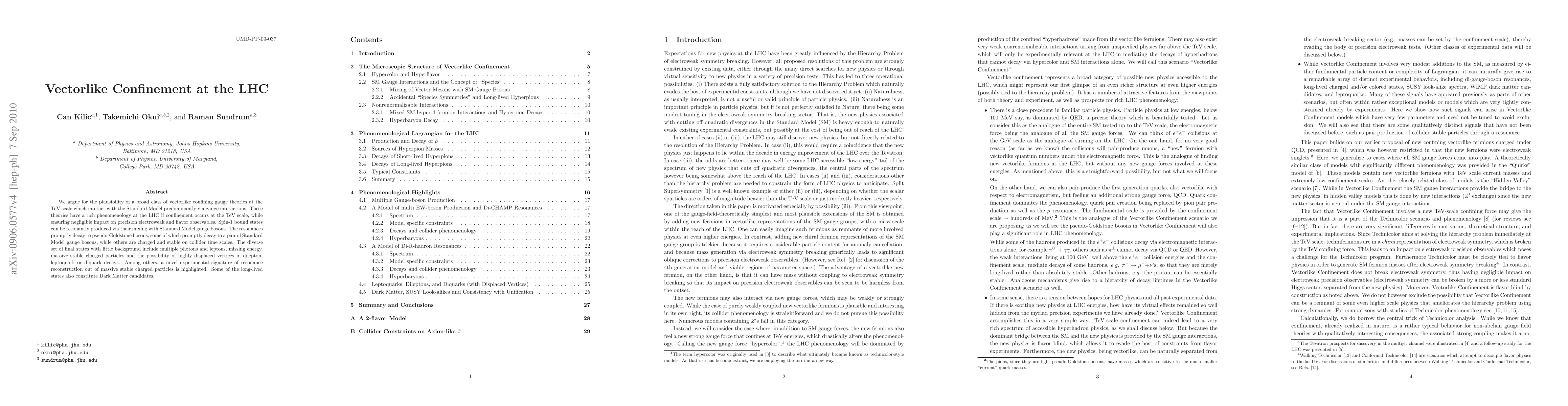 This paper explores vectorlike confining gauge theories at the TeV scale, proposing their potential rich phenomenology at the LHC. It highlights diverse final states, including multiple photons and leptons, and suggests novel signatures like resonance reconstruction from stable charged particles, with some long-lived states serving as Dark Matter candidates.