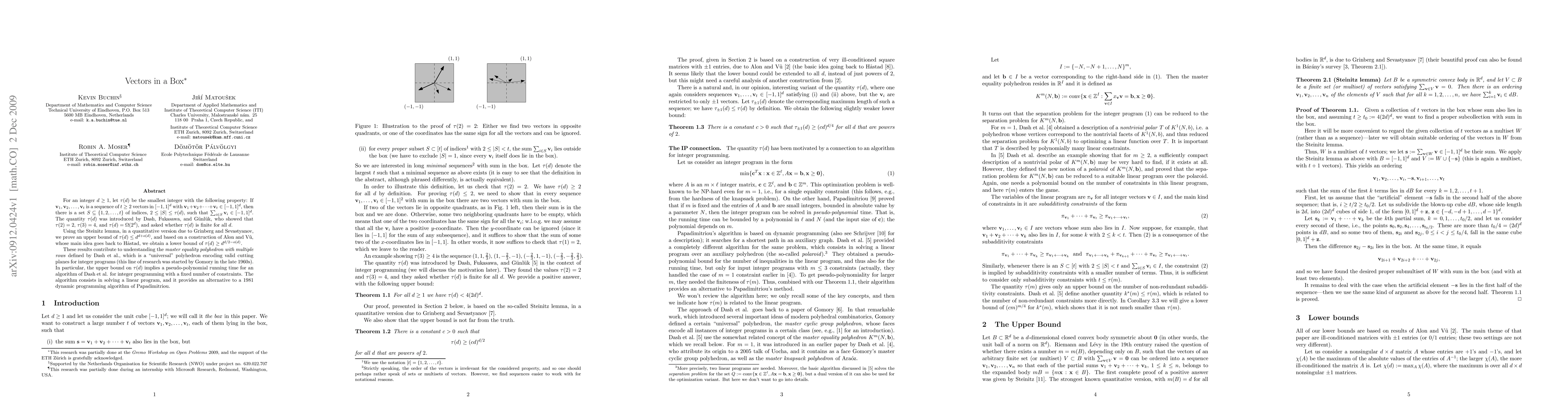 For an integer d>=1, let tau(d) be the smallest integer with the following property: If v1,v2,...,vt is a sequence of t>=2 vectors in [-1,1]^d with v1+v2+...+vt in [-1,1]^d, then there is a subset S of {1,2,...,t} of indices, 2<=|S|<=tau(d), such that \sum_{i\in S} vi is in [-1,1]^d. The quantity tau(d) was introduced by Dash, Fukasawa, and G\"unl\"uk, who showed that tau(2)=2, tau(3)=4, and tau(d)=Omega(2^d), and asked whether tau(d) is finite for all d. Using the Steinitz lemma, in a quantitative version due to Grinberg and Sevastyanov, we prove an upper bound of tau(d) <= d^{d+o(d)}, and based on a construction of Alon and Vu, whose main idea goes back to Hastad, we obtain a lower bound of tau(d)>= d^{d/2-o(d)}. These results contribute to understanding the master equality polyhedron with multiple rows defined by Dash et al., which is a "universal" polyhedron encoding valid cutting planes for integer programs (this line of research was started by Gomory in the late 1960s). In particular, the upper bound on tau(d) implies a pseudo-polynomial running time for an algorithm of Dash et al. for integer programming with a fixed number of constraints. The algorithm consists in solving a linear program, and it provides an alternative to a 1981 dynamic programming algorithm of Papadimitriou.