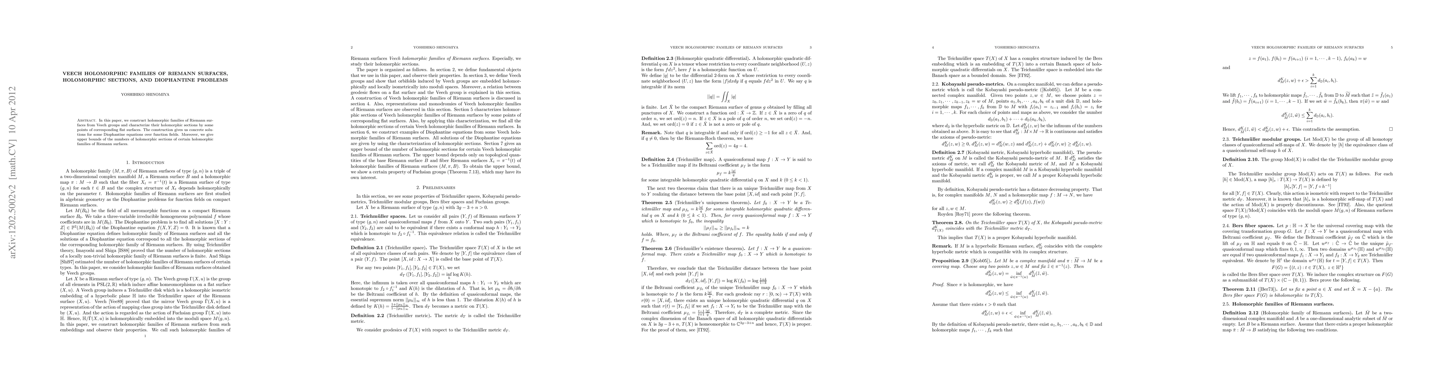 This paper constructs holomorphic families of Riemann surfaces from Veech groups and identifies their sections via points on corresponding flat surfaces, providing solutions to specific Diophantine equations over function fields and establishing upper bounds on the number of holomorphic sections.