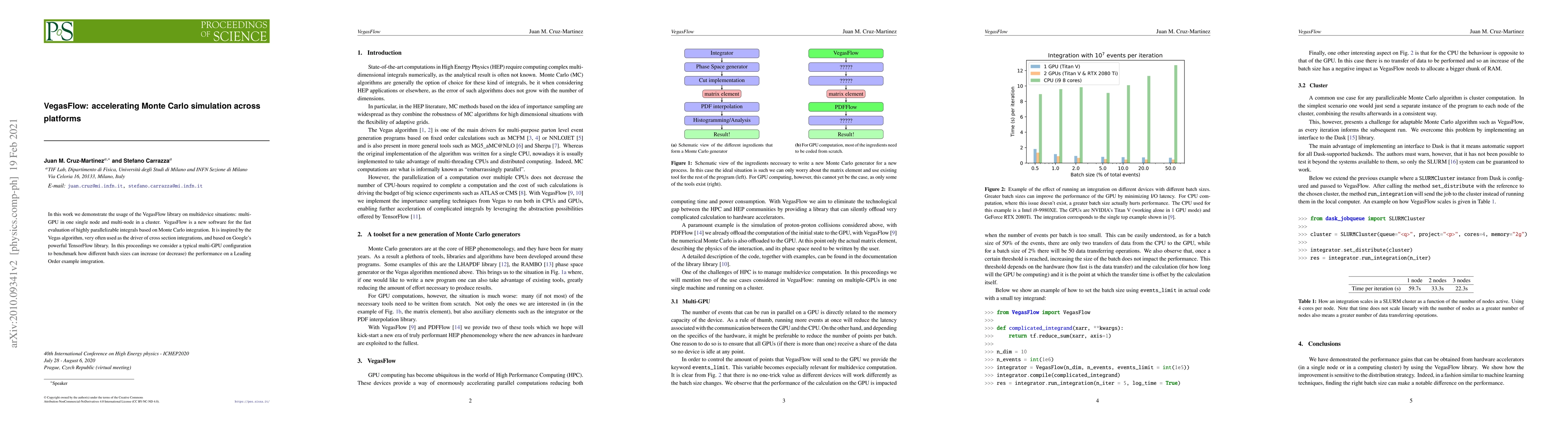 In this work we demonstrate the usage of the VegasFlow library on multidevice situations: multi-GPU in one single node and multi-node in a cluster. VegasFlow is a new software for fast evaluation of highly parallelizable integrals based on Monte Carlo integration. It is inspired by the Vegas algorithm, very often used as the driver of cross section integrations and based on Google's powerful TensorFlow library. In this proceedings we consider a typical multi-GPU configuration to benchmark how different batch sizes can increase (or decrease) the performance on a Leading Order example integration.