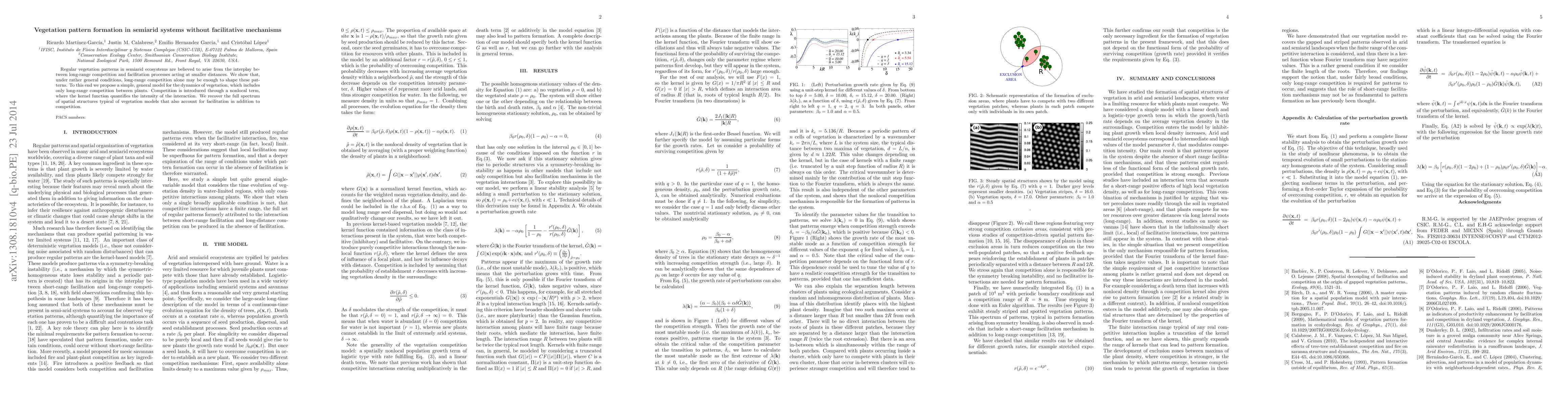 This paper demonstrates that long-range competition alone can generate regular vegetation patterns in semiarid ecosystems without the need for facilitative mechanisms. It proposes a simple model incorporating only long-range competition to replicate the full range of spatial structures typically seen in vegetation models that include both competition and facilitation.