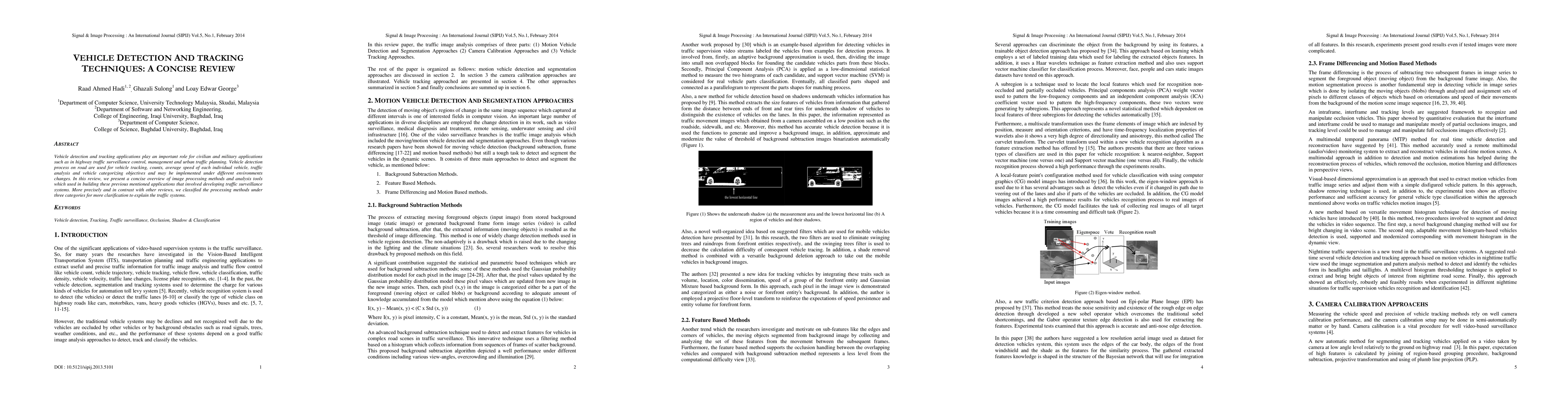 This paper provides a concise overview of vehicle detection and tracking techniques used in traffic surveillance systems, categorizing image processing methods into three distinct groups for clearer understanding and application in both civilian and military contexts.