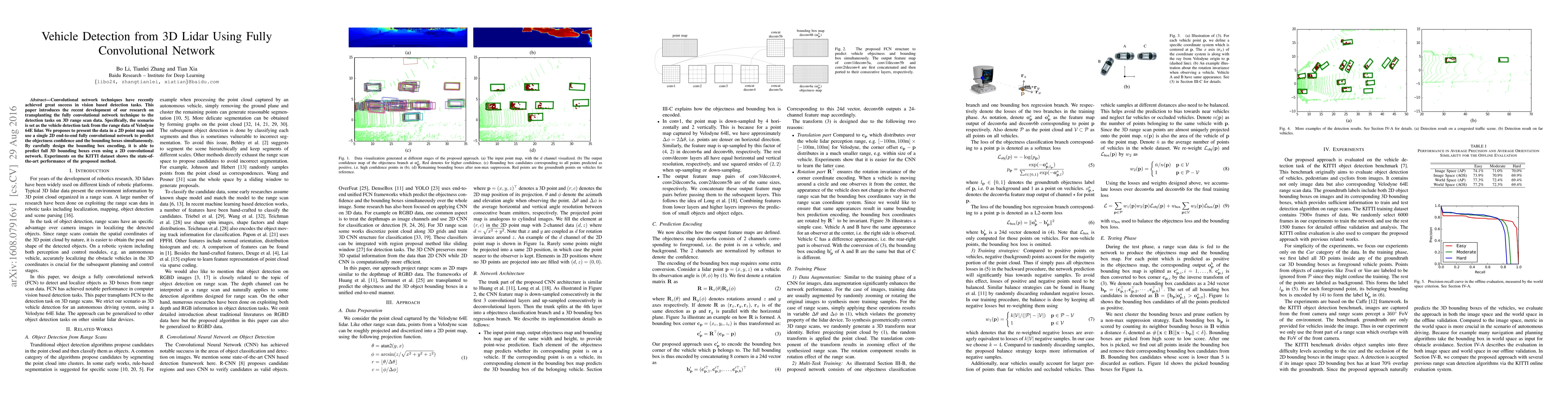This paper proposes a fully convolutional network to detect vehicles from 3D LiDAR data presented as 2D point maps, achieving state-of-the-art performance on the KITTI dataset by predicting 3D bounding boxes using a 2D network.