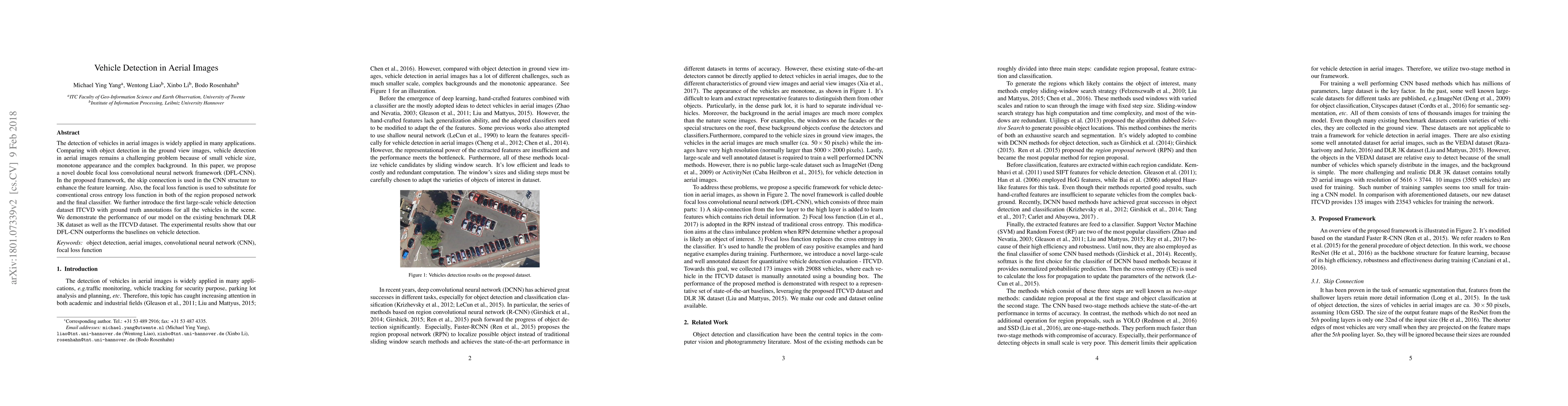 This research introduces a novel double focal loss convolutional neural network (DFL-CNN) for detecting vehicles in aerial images, addressing challenges like small size, monotone appearance, and complex backgrounds. The proposed framework employs skip connections and focal loss to enhance feature learning and detection accuracy. Additionally, a new large-scale dataset, ITCVD, is introduced for further research in this field.