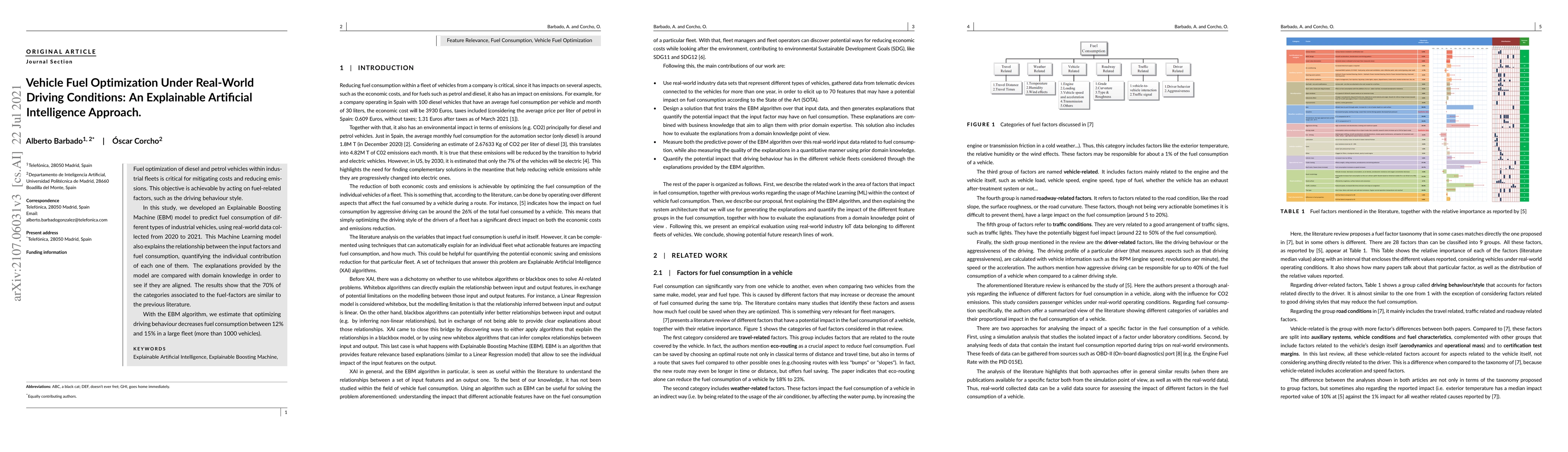 This study develops an AI model to predict fuel consumption in industrial vehicles, achieving a 12-15% reduction in fuel usage through optimized driving behavior.