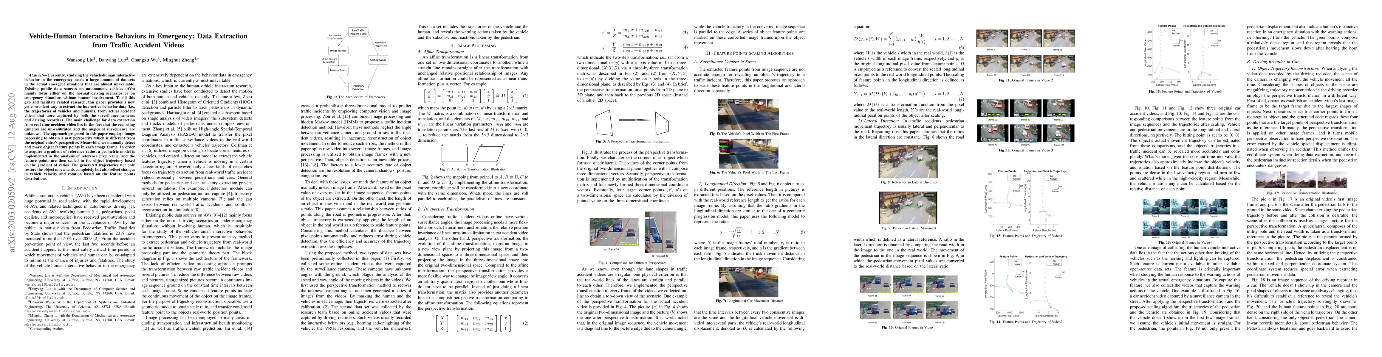 This paper presents a method to extract vehicle-human interactive behavior data from real accident videos, enabling research on emergency situations without relying on existing datasets. The approach uses image processing and geometric modeling to track object movements and capture changes in velocity and rotation.