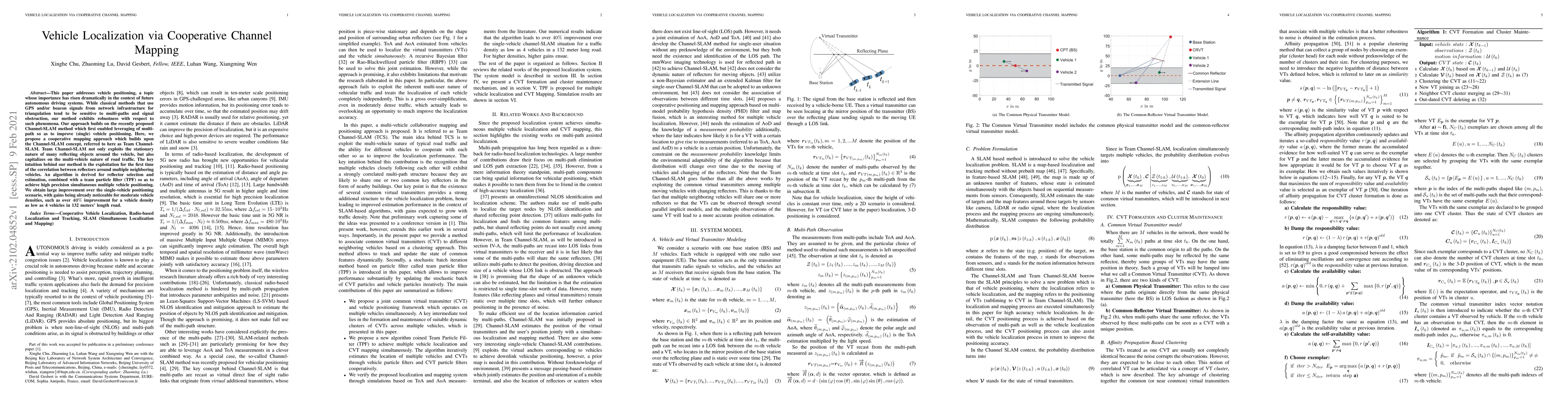 This paper proposes a cooperative channel mapping method for vehicle localization that leverages reflectors from neighboring vehicles to improve positioning accuracy, with improvements of over 40% noticeable even at moderate vehicle densities.