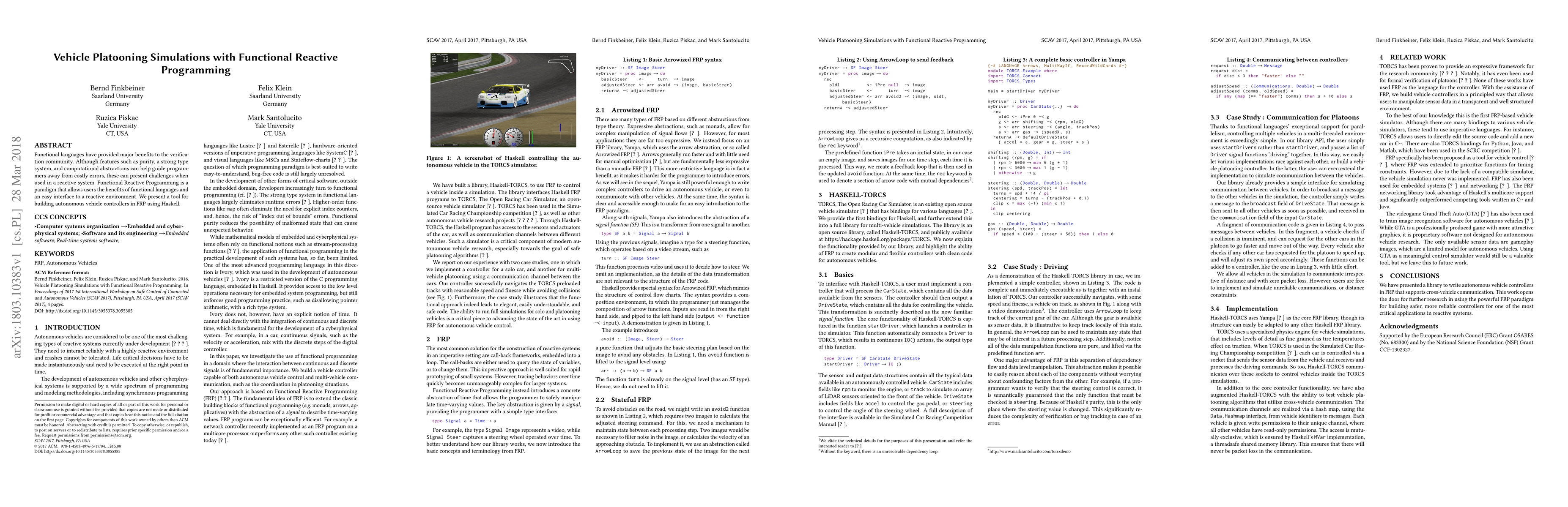 Researchers developed a tool to build autonomous vehicle controllers using Functional Reactive Programming in Haskell, enabling safer and more efficient platooning simulations.