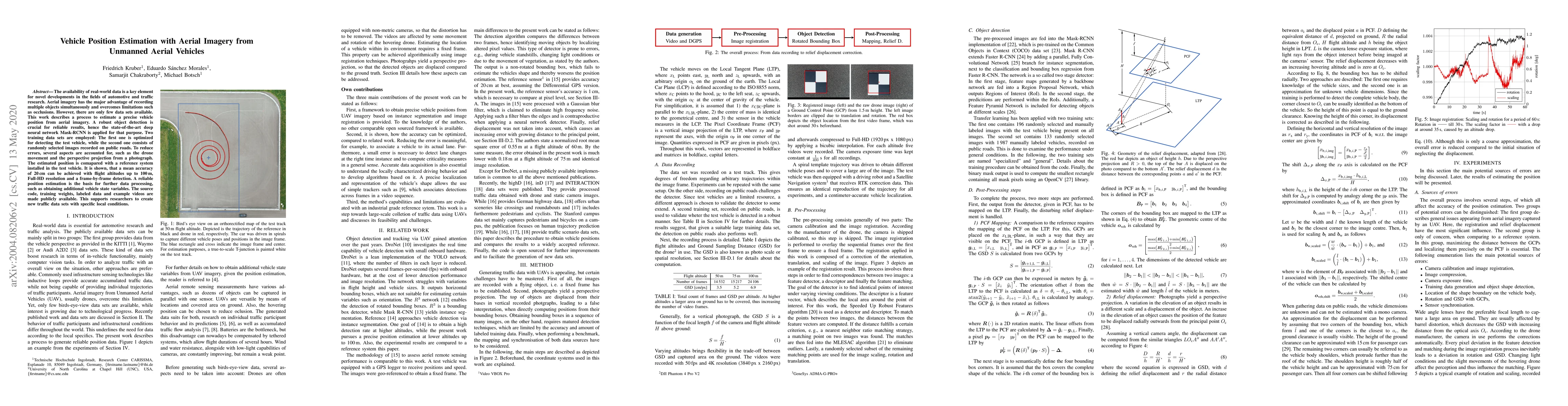Researchers developed a method to estimate vehicle position from aerial imagery using deep neural networks, achieving a mean accuracy of 20 cm with flight altitudes up to 100 m.