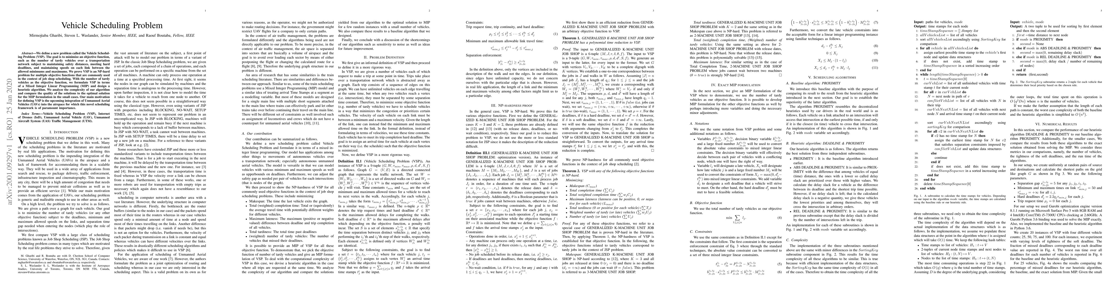 Researchers define a new problem called Vehicle Scheduling Problem (VSP) to minimize tardy vehicles while maintaining safety distances and meeting deadlines for Unmanned Aerial Vehicles (UAVs). The VSP is proven to be NP-hard and a heuristic algorithm is designed to solve the problem.