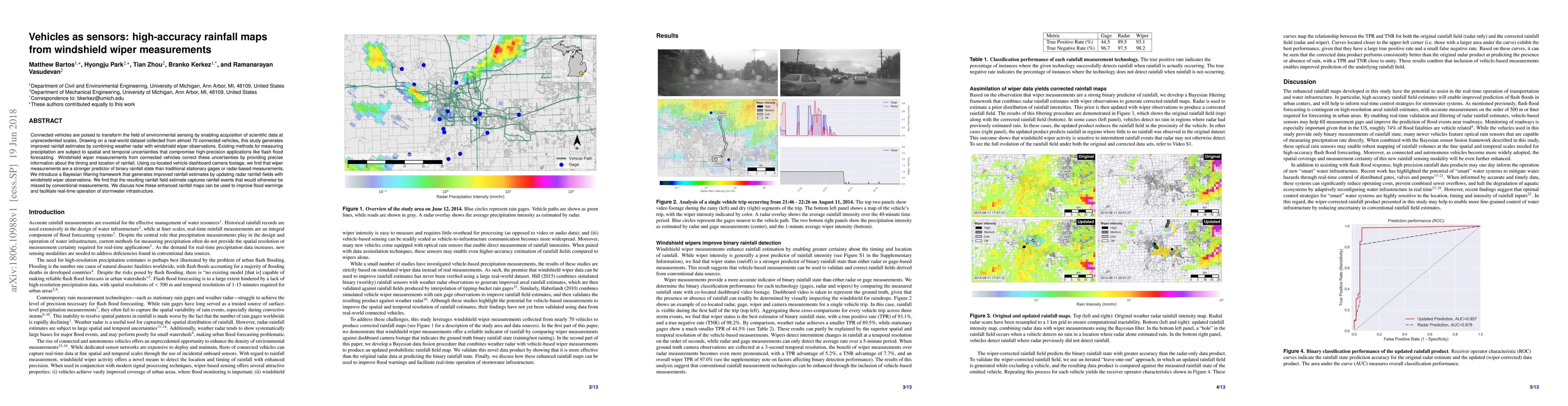 Researchers used windshield wiper data from connected vehicles to create accurate rainfall maps, outperforming traditional methods in predicting binary rainfall states. The findings have implications for improving flood warnings and real-time stormwater infrastructure operation.