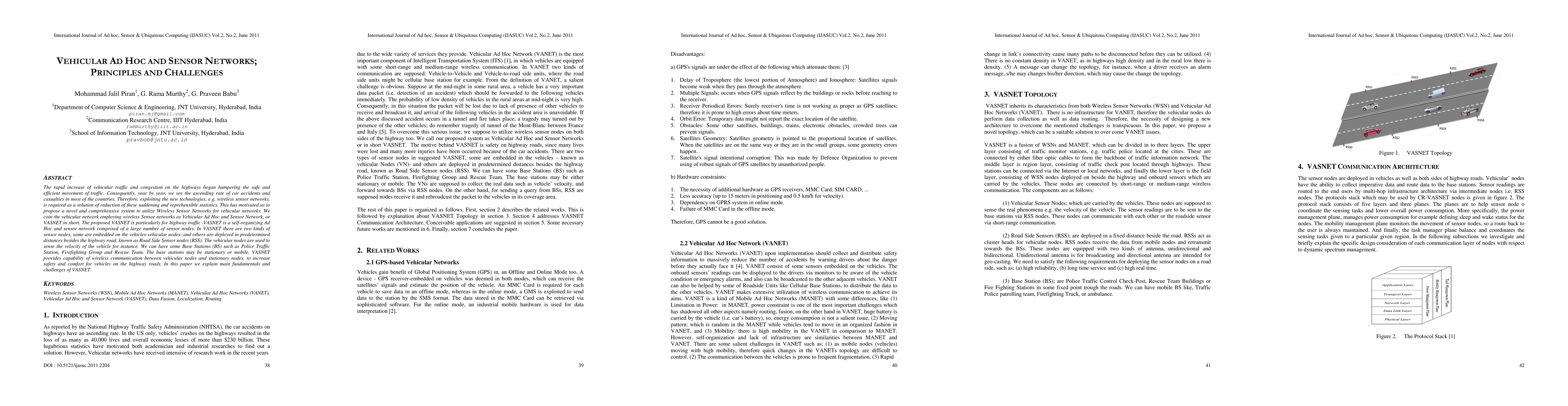 A survey-based approach was used to analyze the state-of-the-art in Vehicular Ad hoc and Sensor Networks (VASNET) for future intelligent transportation systems.