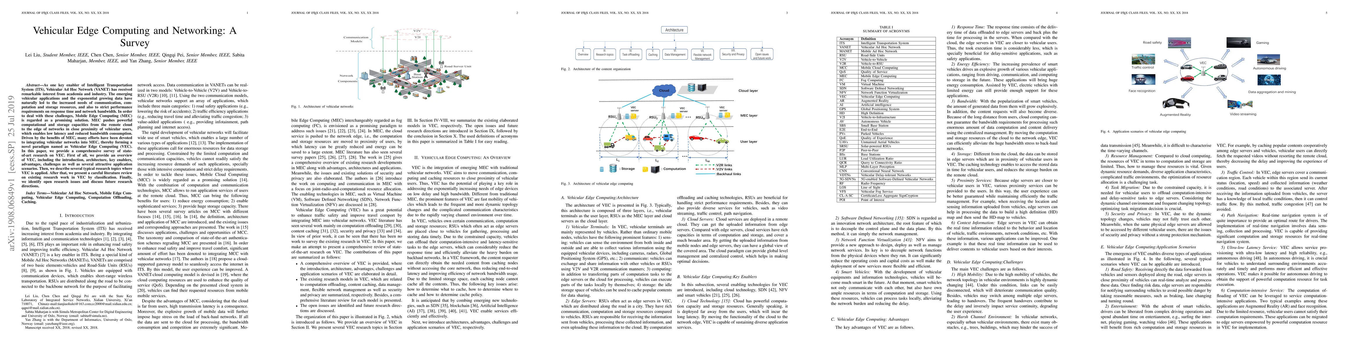 This paper surveys Vehicular Edge Computing (VEC), a promising solution for Intelligent Transportation Systems (ITS) that integrates Mobile Edge Computing with Vehicular Ad Hoc Networks (VANET) to enhance communication, computation, and storage efficiency. It reviews VEC's architecture, key enablers, and application scenarios, and identifies open issues and future research directions.