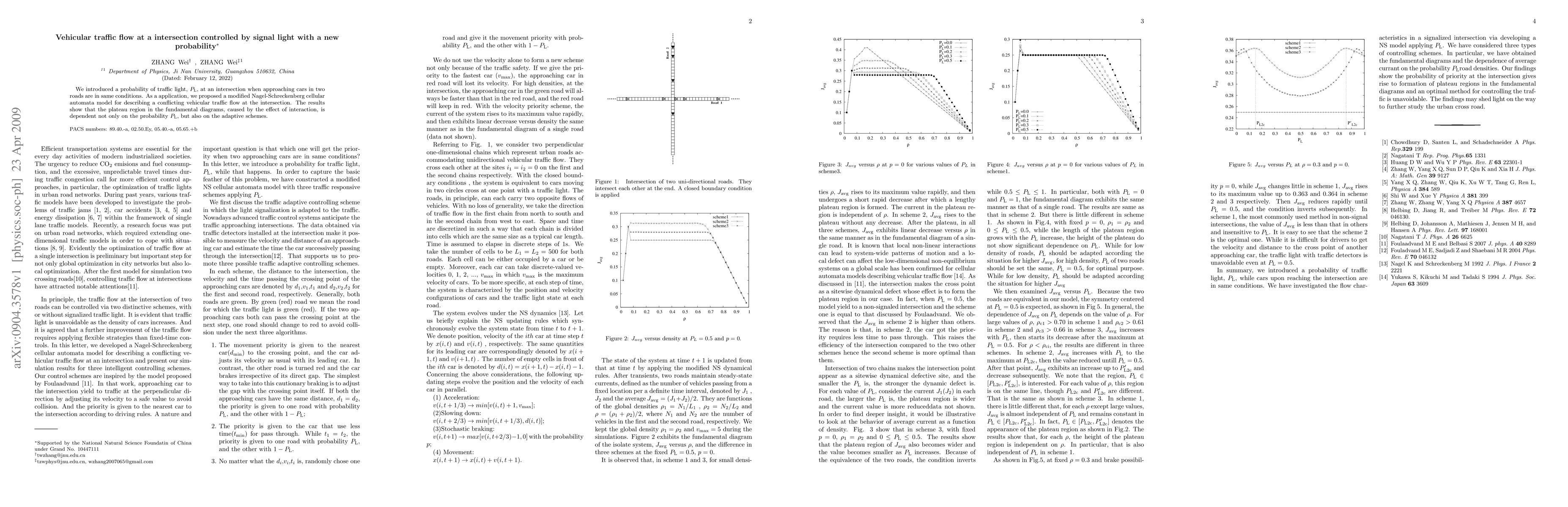 Summary: This paper introduces a new probability factor, PL, for traffic light control at intersections where approaching cars are equally matched. It proposes a modified Nagel-Schreckenberg model to simulate conflicting traffic flow, demonstrating that the plateau region in traffic flow diagrams is influenced by both PL and adaptive driving schemes.