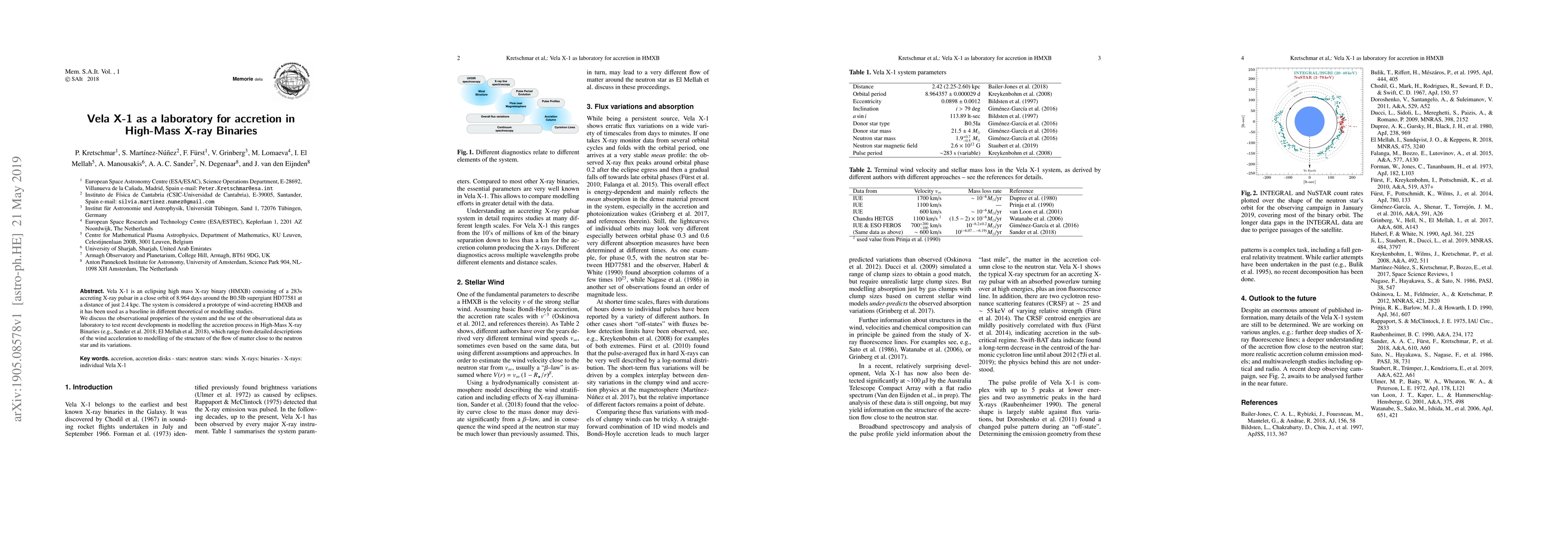 Vela X-1 is a laboratory for studying accretion in high-mass X-ray binaries, offering insights into the wind-accreting process near neutron stars. The research uses its observational properties to test recent modeling developments.