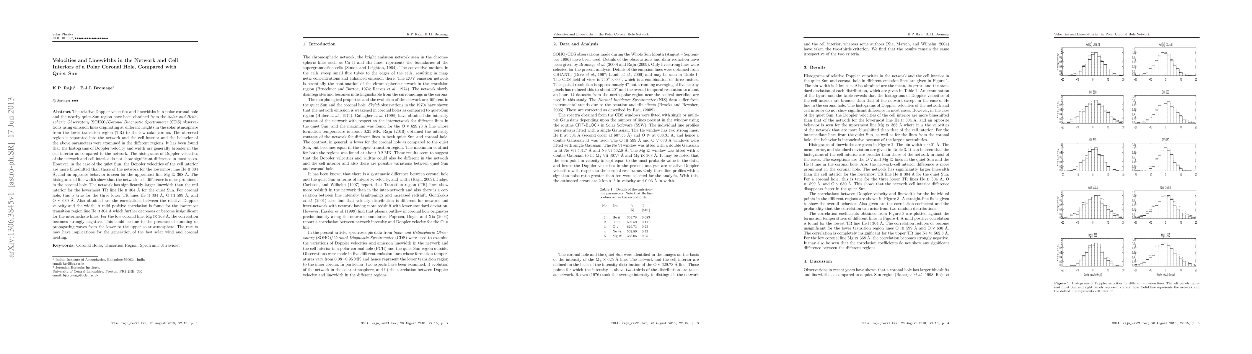 This study compares Doppler velocities and linewidths in a polar coronal hole and quiet Sun using SOHO/CDS observations, finding that the cell interior generally has broader histograms than the network. The quiet Sun shows blueshifted Doppler velocities in the cell interior for lower lines, contrasting with the coronal hole where the network exhibits significantly larger linewidths for lower transition region lines.