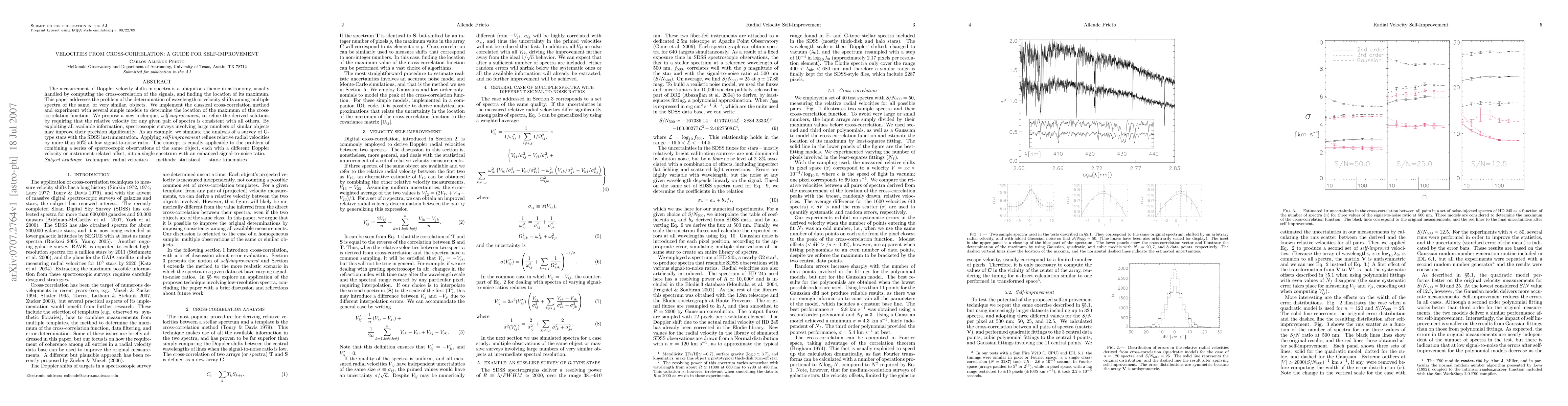 Researchers develop a new technique called 'self-improvement' to refine velocities measured from cross-correlation of spectra, improving precision by over 50% at low signal-to-noise ratio.