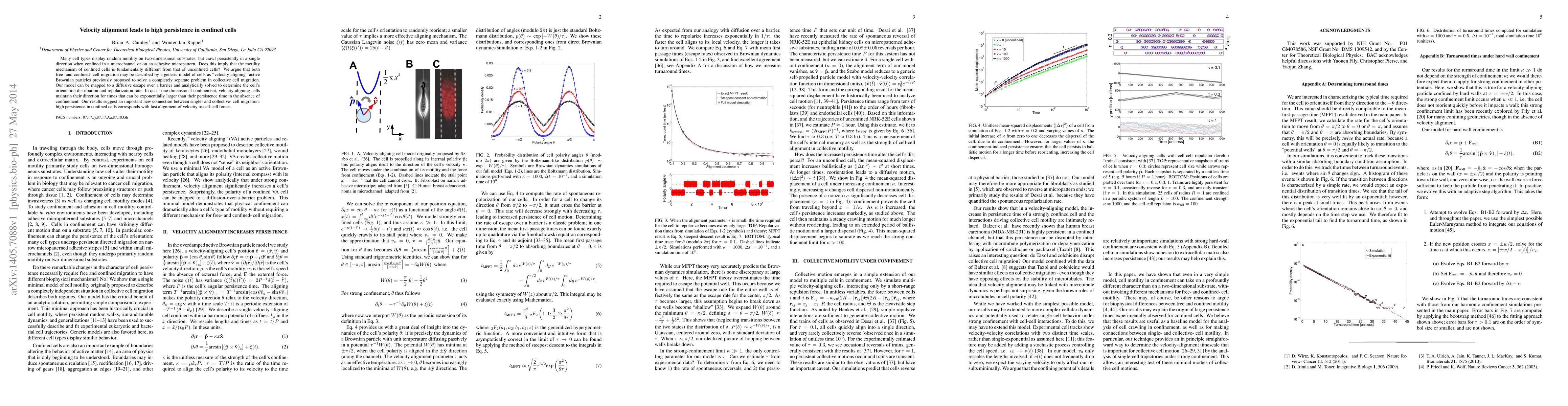 Confining cells in microchannels or with adhesive patterns leads to persistent movement in a single direction, which can last exponentially longer than in unconfined conditions. This phenomenon can be explained by a model of 'velocity aligning' active Brownian particles that describe the cell's orientation distribution and repolarization rate.