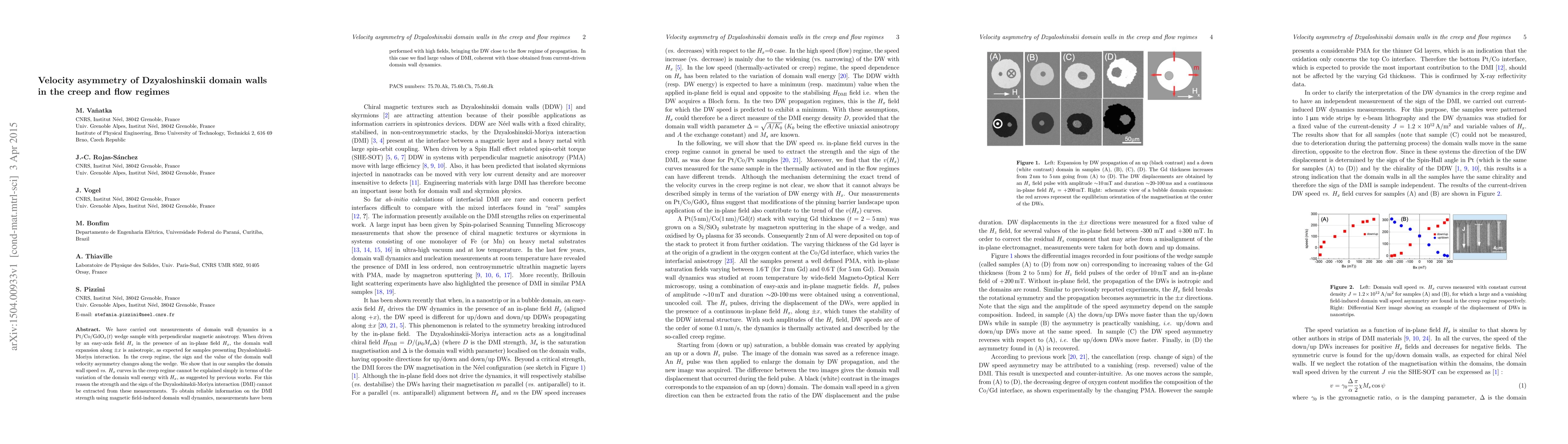 The study examines domain wall dynamics in a Pt/Co/GdOx(t) wedge sample, revealing velocity asymmetry due to Dzyaloshinskii-Moriya interaction. Creep regime measurements show unexpected behavior, suggesting DMI strength can't be directly determined from these measurements alone; high-field measurements are needed for reliable DMI strength estimation, consistent with current-driven domain wall dynamics results.