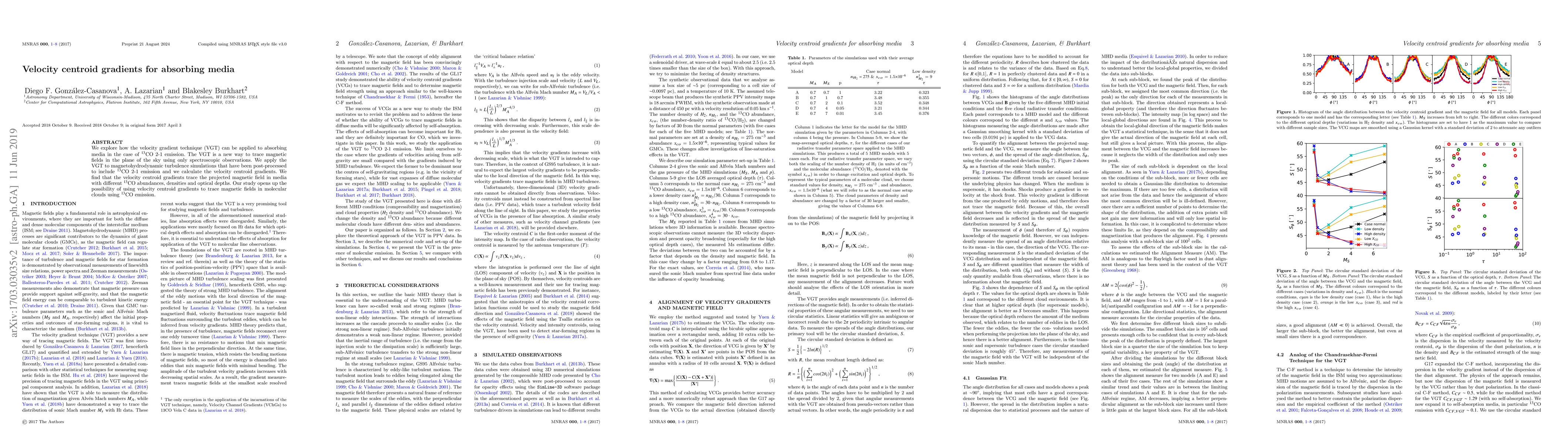 We explore how the velocity gradient technique (VGT) can be applied to absorbing media in the case of$^{13}$CO 2-1 emission. The VGT is a new way to trace magnetic fields in the plane of the sky using only spectroscopic observations. We apply the VGT to magnetohydrodynamic turbulence simulations that have been post-processed to include $^{13}$CO 2-1 emission and we calculate the velocity centroid gradients. We find that the velocity centroid gradients trace the projected magnetic field in media with different $^{13}$CO abundances, densities and optical depths. Our study opens up the possibility of using velocity centroid gradients to trace magnetic fields in molecular clouds using 13CO emission.