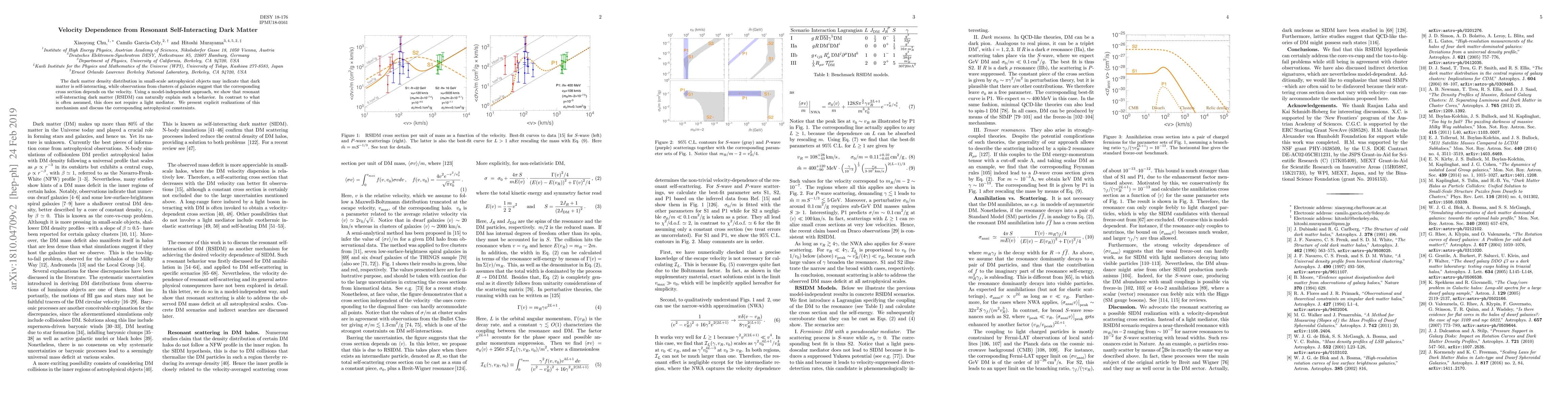 This paper proposes that resonant self-interacting dark matter (RSIDM) can naturally explain the velocity-dependent cross section observed in dark matter interactions, without necessitating a light mediator. It provides model-independent evidence and discusses astrophysical constraints for such a mechanism.