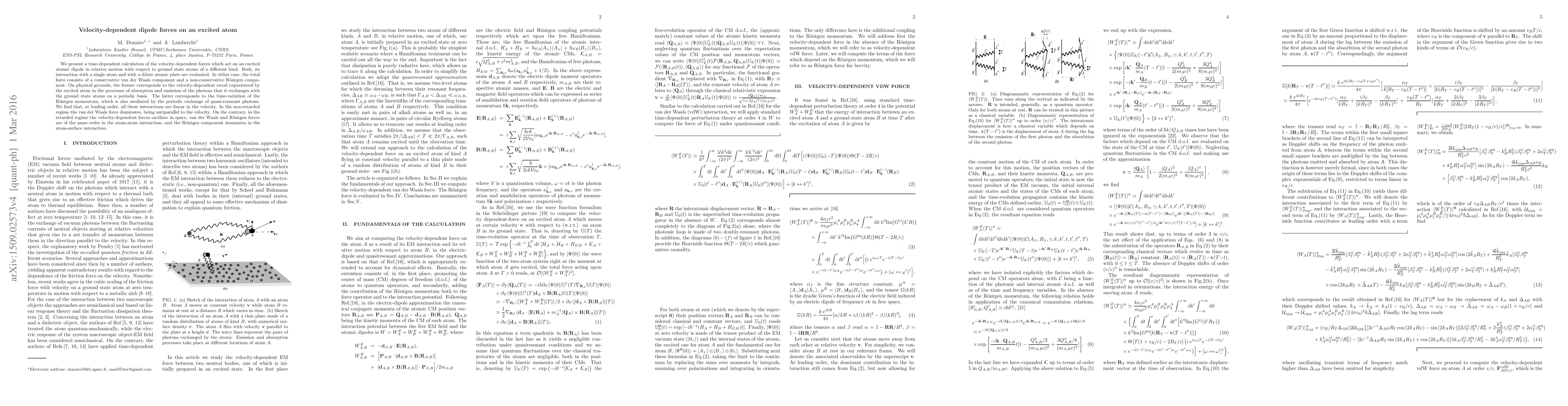 This paper investigates velocity-dependent forces on an excited atomic dipole moving relative to ground state atoms, revealing both conservative van der Waals and non-conservative Rontgen components. In the non-retarded regime, the van der Waals force dominates, while in the retarded regime, the Rontgen component becomes more significant.