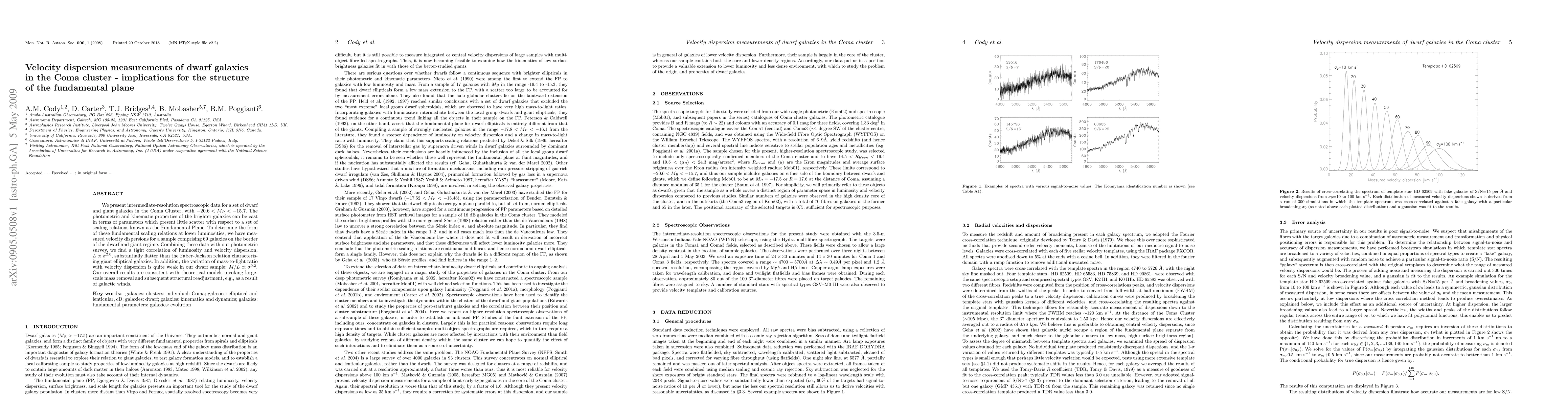 This study measures velocity dispersions in dwarf galaxies within the Coma Cluster, revealing a flatter scaling relation between luminosity and velocity dispersion compared to giant elliptical galaxies. The findings support models of large-scale mass removal and structural readjustment in dwarf galaxies.