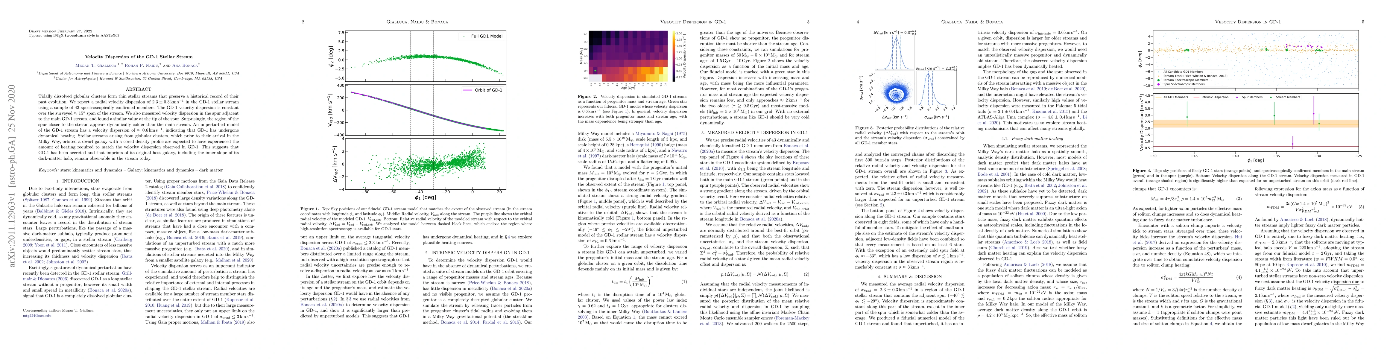 The GD-1 stellar stream has a radial velocity dispersion of $2.3 m{km/s}$, indicating it has undergone dynamical heating after being accreted, revealing imprints of its original host galaxy.