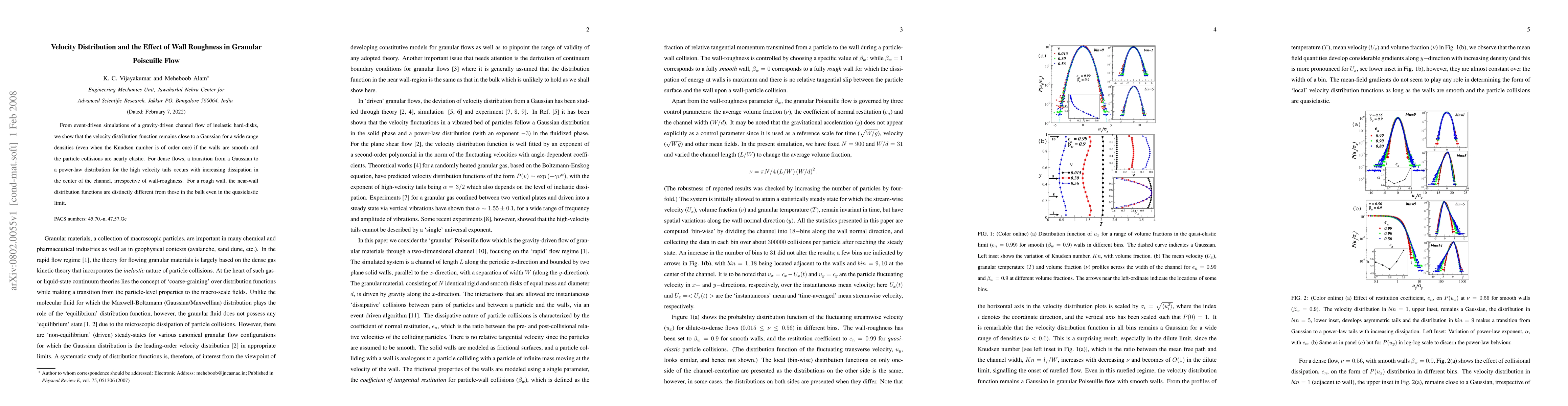 From event-driven simulations of a gravity-driven channel flow of inelastic hard-disks, we show that the velocity distribution function remains close to a Gaussian for a wide range densities (even when the Knudsen number is of order one) if the walls are smooth and the particle collisions are nearly elastic. For dense flows, a transition from a Gaussian to a power-law distribution for the high velocity tails occurs with increasing dissipation in the center of the channel, irrespective of wall-roughness. For a rough wall, the near-wall distribution functions are distinctly different from those in the bulk even in the quasielastic limit.