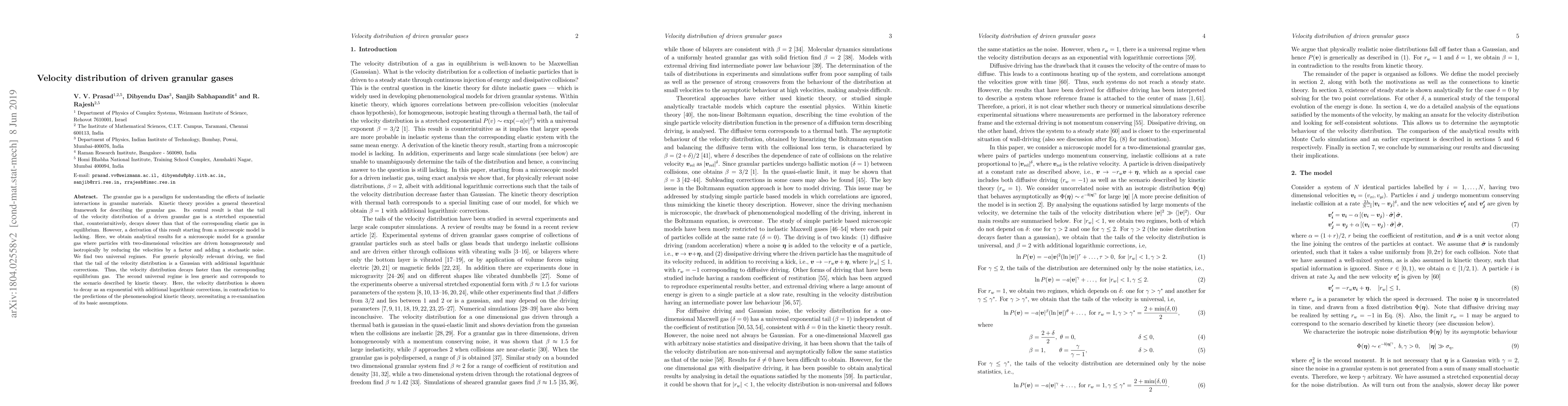 This paper investigates the velocity distribution in driven granular gases, revealing two universal regimes. In the first, the velocity distribution decays faster than in equilibrium gases, while the second regime contradicts kinetic theory predictions, suggesting a need for revisiting its foundational assumptions.