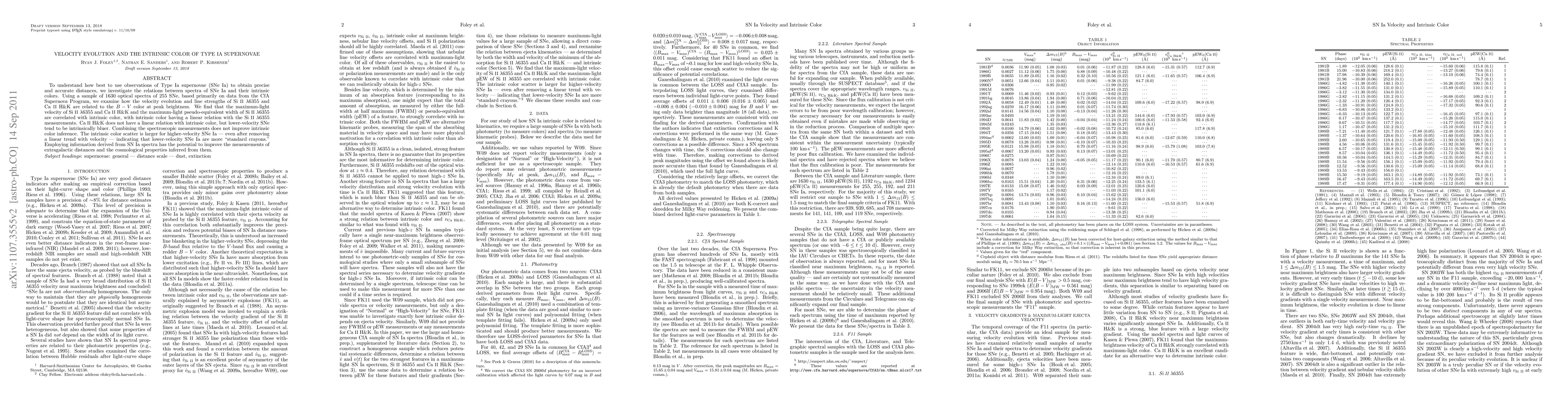 This paper investigates the relationship between the velocity evolution and line strengths in Type Ia supernovae (SNe Ia) spectra and their intrinsic colors, finding that maximum-light velocity of Si II 6355 correlates linearly with intrinsic color, while Ca II H&K does not. This correlation can improve distance measurements and cosmological inferences from SNe Ia observations.