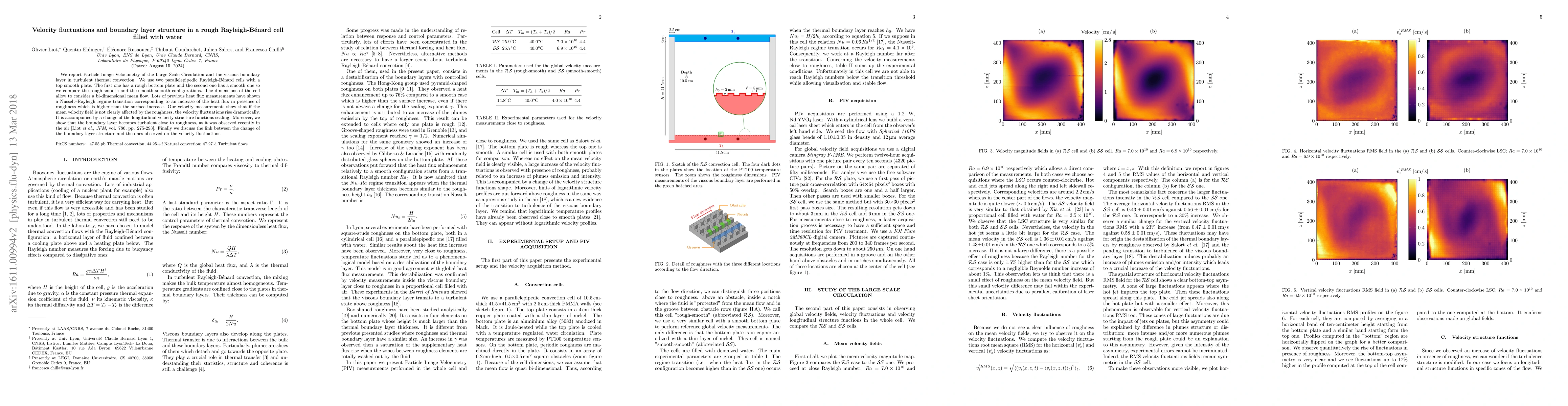 This study uses Particle Image Velocimetry to compare velocity fluctuations and boundary layer structures in turbulent thermal convection between rough and smooth bottom plates in Rayleigh-Bénard cells. While mean velocity fields remain unaffected, roughness significantly increases velocity fluctuations and alters the boundary layer structure, leading to turbulence near the roughness.