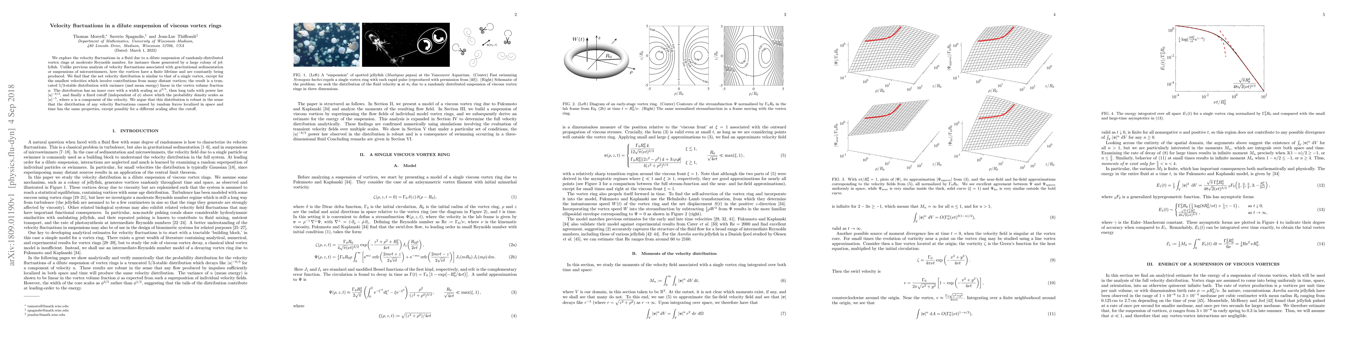 The paper presents a detailed analytical model and numerical simulations to characterize the velocity distribution in a suspension of viscous vortex rings, extending previous work on sedimentation and microswimmer suspensions.