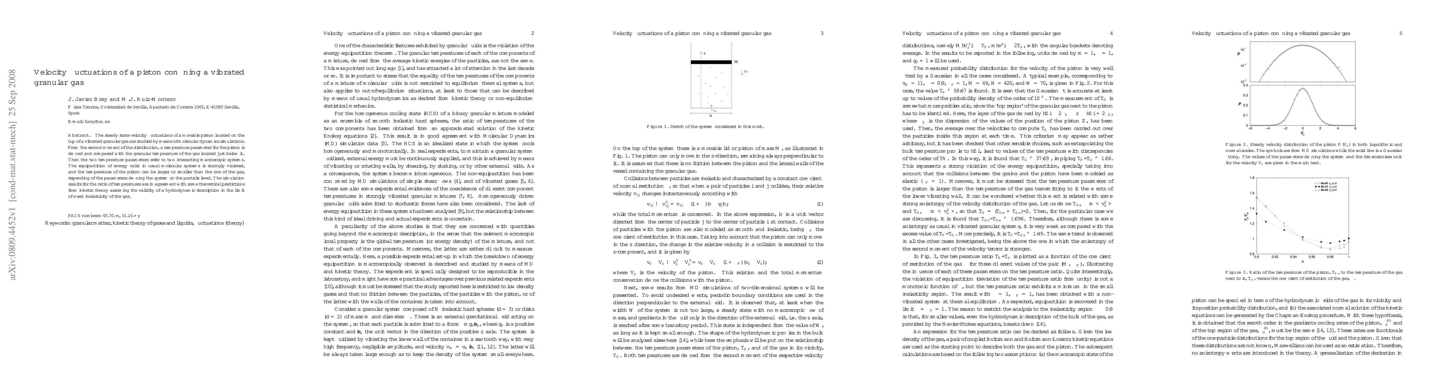 This paper investigates the velocity fluctuations of a piston in a vibrated granular gas using molecular dynamics simulations. It reveals that the equipartition of energy is violated, leading to a temperature for the piston that can differ significantly from the granular temperature below it, with results aligning with theoretical kinetic predictions.