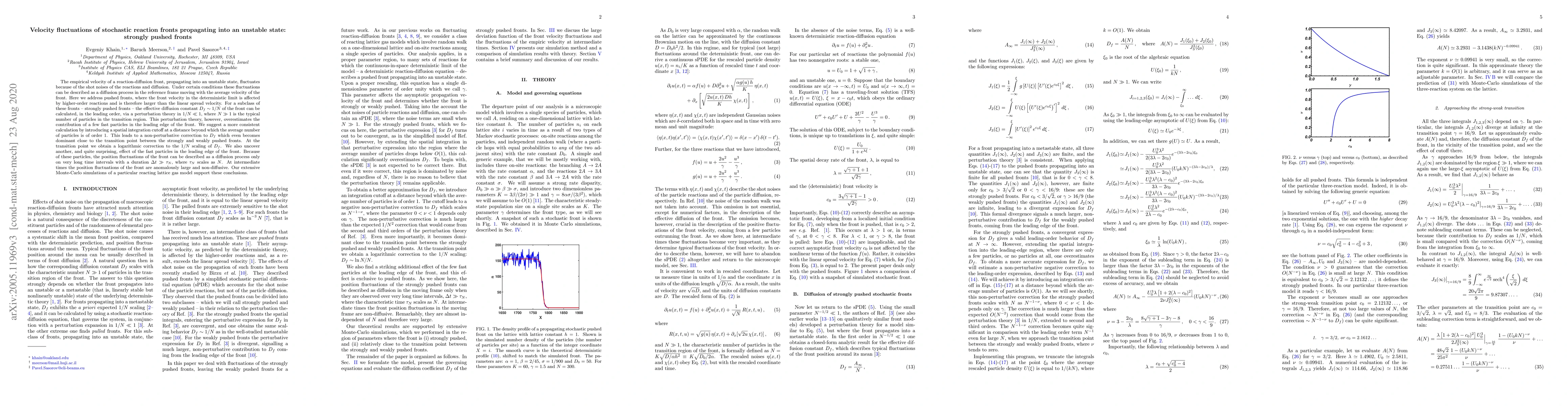 This paper investigates the velocity fluctuations of strongly pushed reaction-diffusion fronts in unstable states, revealing that their effective diffusion constant can be calculated via perturbation theory. However, it introduces a non-perturbative correction due to fast particles at the front's leading edge, leading to anomalous, non-diffusive fluctuations at intermediate times.