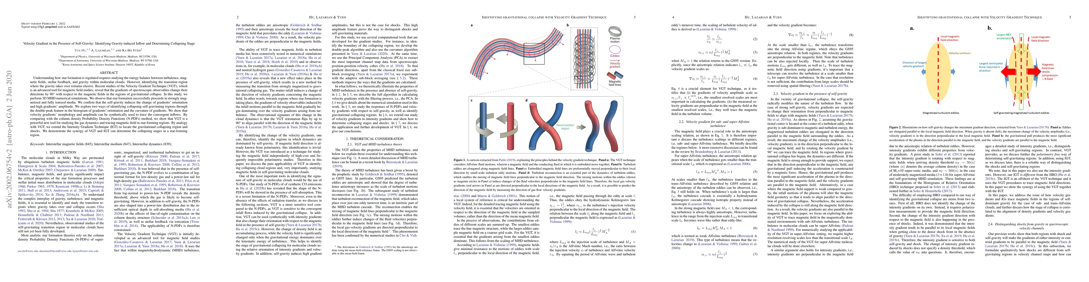Understanding how star formation is regulated requires studying the energy balance between turbulence, magnetic fields, stellar feedback, and gravity within molecular clouds. However, identifying the transition region where the gravity takes over remains elusive. Recent studies of the Velocity Gradient Technique (VGT), which is an advanced tool for magnetic field studies, reveal that the gradients of spectroscopic observables change their directions by 90 degrees with respect to the magnetic fields in the regions of gravitational collapse. In this study, we perform 3D MHD numerical simulations. We observe that star formation successfully proceeds in strongly magnetized and fully ionized media. We confirm that the self-gravity induces the change of gradients' orientation and high gradients' amplitude. We explore two ways of identifying collapsing self-gravitating regions through the double-peak feature in the histogram of gradients' orientation and the curvature of gradients. We show that velocity gradients' morphology and amplitude can be synthetically used to trace the convergent inflows. By comparing with the column density Probability Density Functions (N-PDFs) method, we show that VGT is a powerful new tool for studying the gas dynamics and tracing magnetic field in star-forming regions. By analogy with VGT, we extend the Intensity Gradient Technique (IGT) to locate the gravitational collapsing region and shocks. We demonstrate the synergy of VGT and IGT can determine the collapsing stages in a star-forming region.