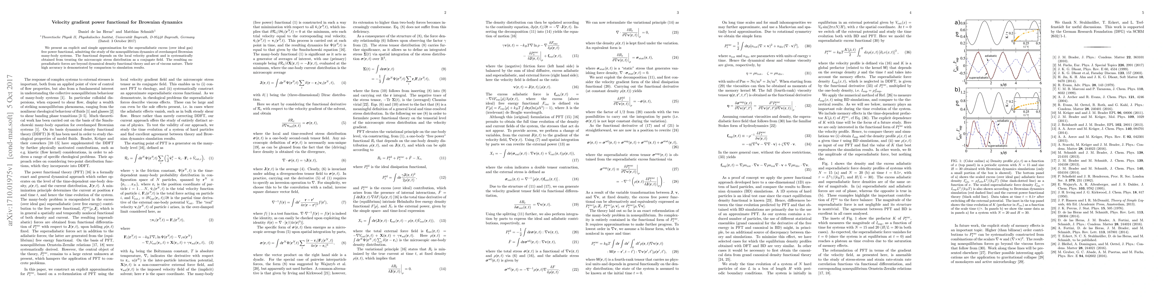 This paper introduces a new velocity gradient power functional for studying nonequilibrium dynamics in overdamped Brownian systems, derived from treating microscopic stress as a conjugate field, and validated against simulation results. The functional provides accurate superadiabatic forces beyond traditional density functional theory.
