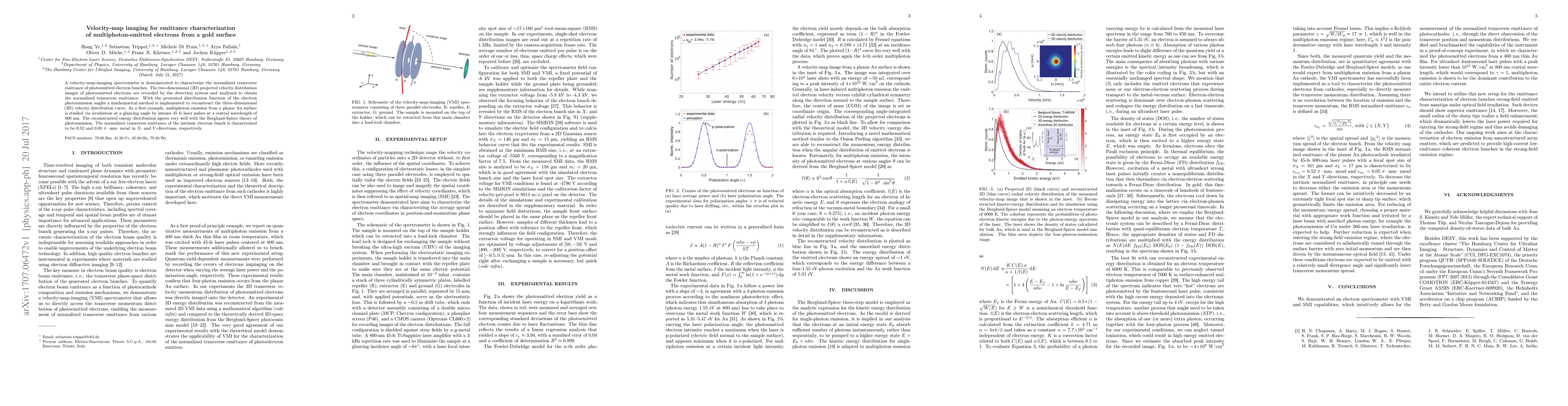 The research presents a method using a velocity-map-imaging spectrometer to measure the normalized transverse emittance of photoemitted electrons from a gold surface. By analyzing 2D projected velocity distribution images and reconstructing a 3D velocity distribution curve, the study finds the emittance in X-direction to be 0.52 and in Y-direction 0.05 π·mm·mrad, validating the Berglund-Spicer theory of photoemission.