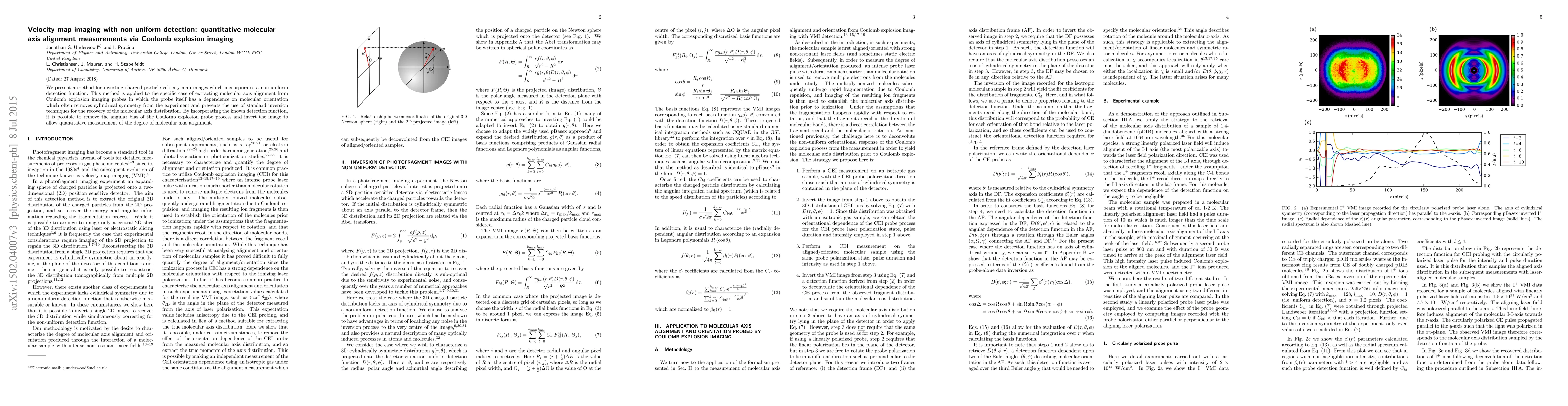 This paper introduces a method for inverting velocity map images that accounts for non-uniform detection, enabling quantitative measurements of molecular axis alignment in Coulomb explosion imaging, overcoming the loss of cylindrical symmetry in traditional techniques. The approach corrects for angular bias, facilitating precise recovery of the molecular axis distribution.