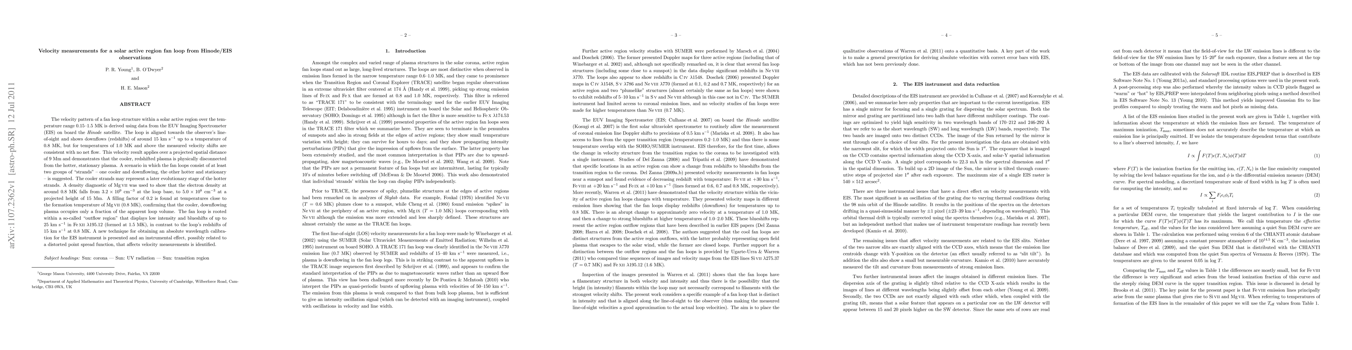 The velocity pattern of a fan loop structure within a solar active region over the temperature range 0.15-1.5 MK is derived using data from the EUV Imaging Spectrometer (EIS) on board the Hinode satellite. The loop is aligned towards the observer's line-of-sight and shows downflows (redshifts) of around 15 km/s up to a temperature of 0.8 MK, but for temperatures of 1.0 MK and above the measured velocity shifts are consistent with no net flow. This velocity result applies over a projected spatial distance of 9 Mm and demonstrates that the cooler, redshifted plasma is physically disconnected from the hotter, stationary plasma. A scenario in which the fan loops consist of at least two groups of "strands" - one cooler and downflowing, the other hotter and stationary -- is suggested. The cooler strands may represent a later evolutionary stage of the hotter strands. A density diagnostic of Mg VII was used to show that the electron density at around 0.8 MK falls from 3.2 x 10^9 cm^-3 at the loop base, to 5.0 x 10^8 cm^-3 at a projected height of 15 Mm. A filling factor of 0.2 is found at temperatures close to the formation temperature of Mg VII (0.8 MK), confirming that the cooler, downflowing plasma occupies only a fraction of the apparent loop volume. The fan loop is rooted within a so-called "outflow region" that displays low intensity and blueshifts of up to 25 km/s in Fe XII 195.12 A (formed at 1.5 MK), in contrast to the loop's redshifts of 15 km/s at 0.8 MK. A new technique for obtaining an absolute wavelength calibration for the EIS instrument is presented and an instrumental effect, possibly related to a distorted point spread function, that affects velocity measurements is identified.
