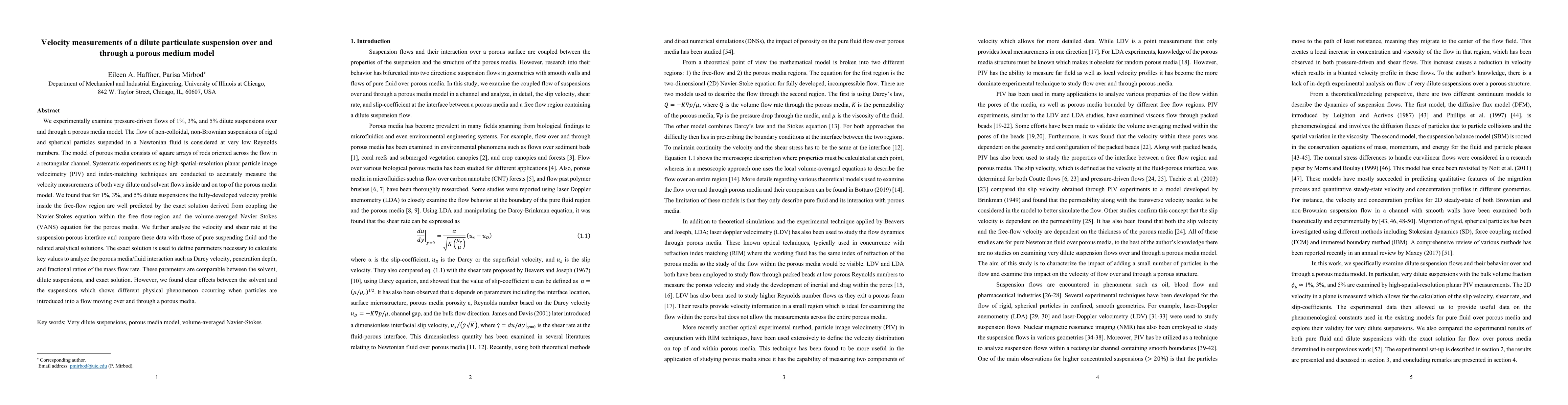 A combination of experimental and theoretical approaches were used to investigate the flow characteristics of a fluid through a porous medium.