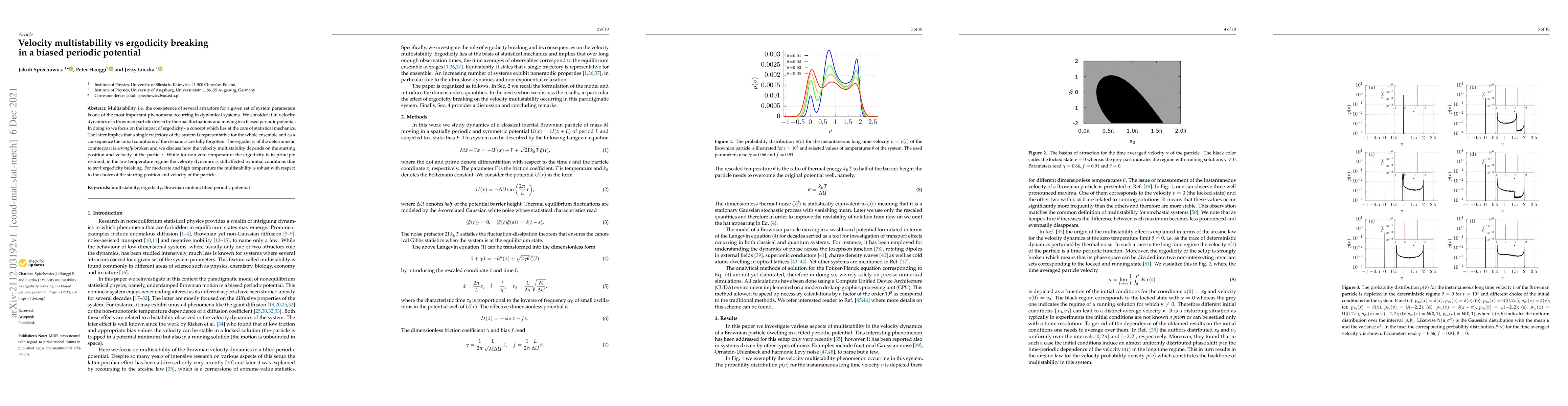 Multistability, i.e. the coexistence of several attractors for a given set of system parameters is one of the most important phenomena occurring in dynamical systems. We consider it in velocity dynamics of a Brownian particle driven by thermal fluctuations and moving in a biased periodic potential. In doing so we focus on the impact of ergodicity - a concept which lies at the core of statistical mechanics. The latter implies that a single trajectory of the system is representative for the whole ensemble and as a consequence the initial conditions of the dynamics are fully forgotten. The ergodicity of the deterministic counterpart is strongly broken and we discuss how the velocity multistability depends on the starting position and velocity of the particle. While for non-zero temperature the ergodicity is in principle restored, in the low temperature regime the velocity dynamics is still affected by initial conditions due to weak ergodicity breaking. For moderate and high temperature the multistability is robust with respect to the choice of the starting position and velocity of the particle.