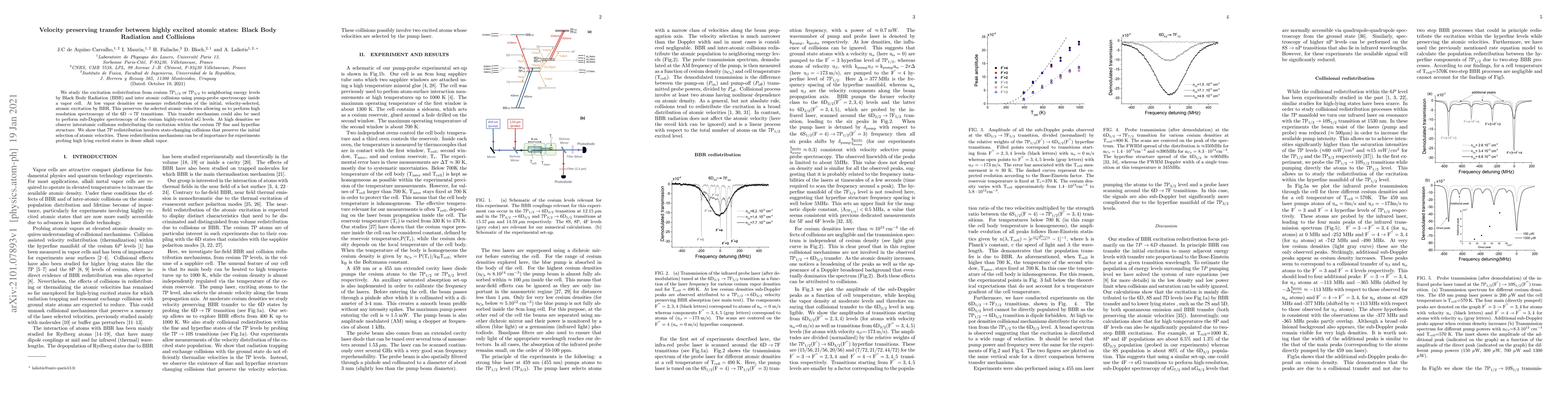 This paper investigates the redistribution of excitation from cesium $7\mathrm{P}$ states to neighboring levels via Black Body Radiation and interatomic collisions, preserving atomic velocities. It demonstrates high-resolution spectroscopy potential and sub-Doppler spectroscopy applications for cesium highly-excited states.