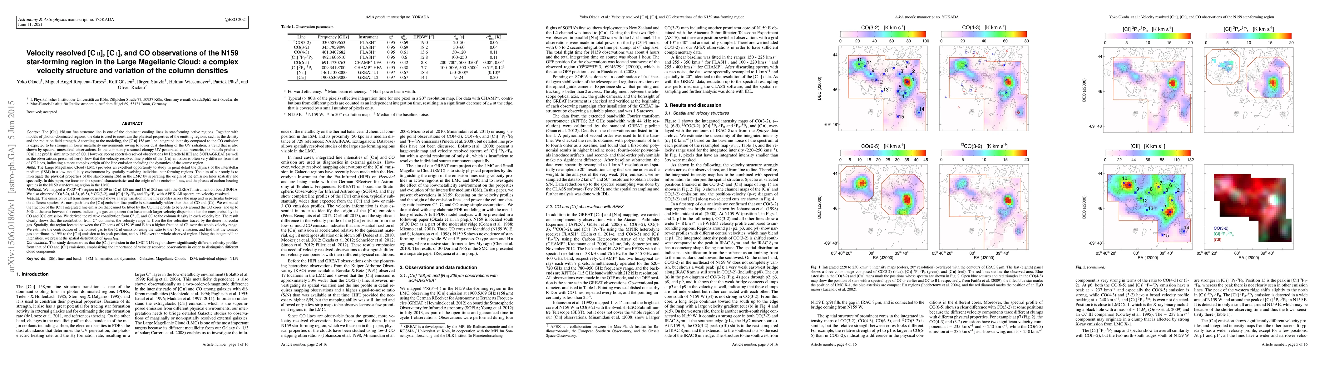 This study investigates the complex velocity structure and column density variations of [CII], [CI], and CO in the N159 star-forming region of the Large Magellanic Cloud using spectral observations. The [CII] emission line profiles differ significantly from CO, indicating a more intricate origin involving dynamics and ionization states, with C+ dominating in regions away from dense molecular gas.