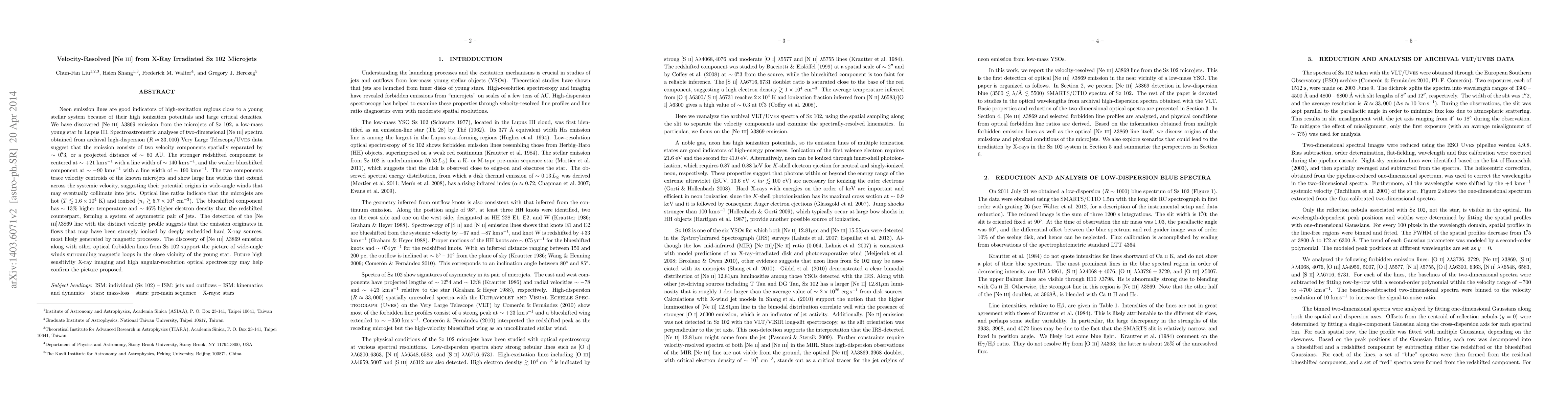 Researchers detected [Ne III] emission lines in Sz 102 microjets, indicating high-excitation regions near a young star, suggesting the presence of wide-angle winds surrounding magnetic loops.
