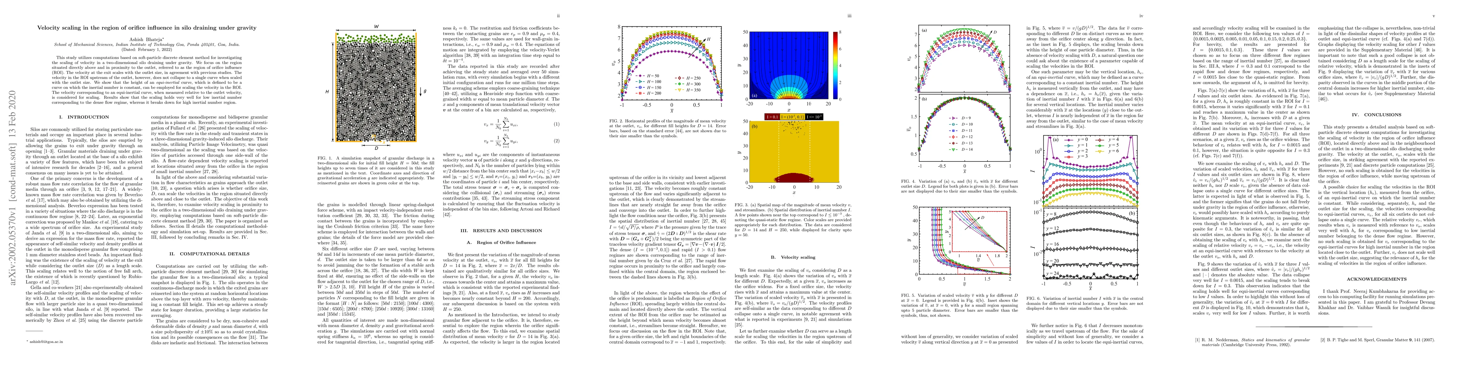This study utilizes computations based on soft-particle discrete element method for investigating the scaling of velocity in a two-dimensional silo draining under gravity. We focus on the region situated directly above and in proximity to the outlet, referred to as the region of orifice influence (ROI). The velocity at the exit scales with the outlet size, in agreement with previous studies. The velocity in the ROI upstream of the outlet, however, does not collapse to a single curve when scaled with the outlet size. We show that the height of an $\textit{equi-inertial}$ curve, which is defined to be a curve on which the inertial number is constant, can be employed for scaling the velocity in the ROI. The velocity corresponding to an equi-inertial curve, when measured relative to the outlet velocity, is considered for scaling. Results show that the scaling holds very well for low inertial number corresponding to the dense flow regime, whereas it breaks down for high inertial number region.