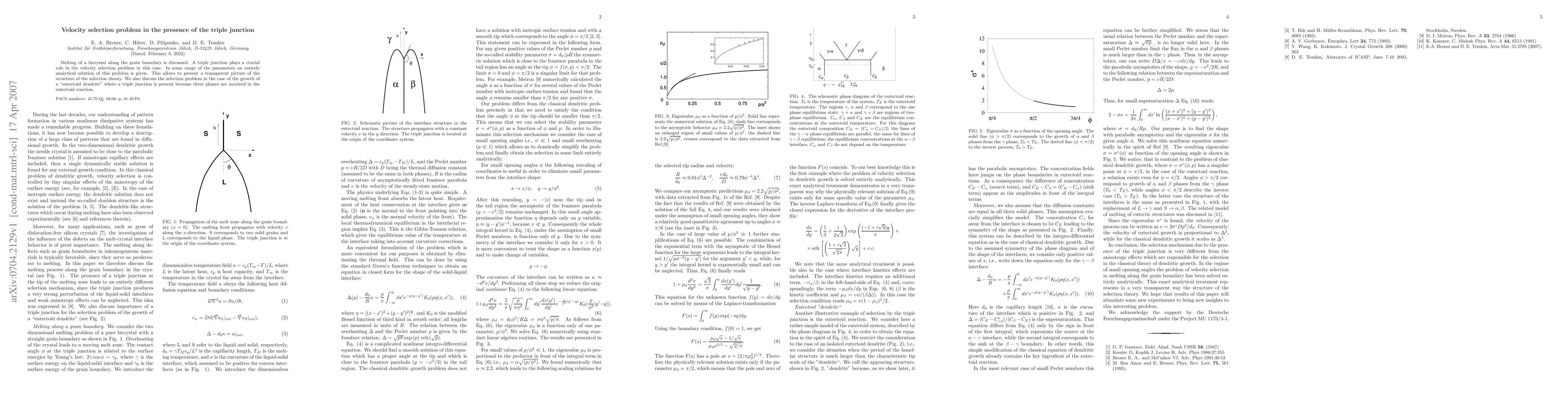 Melting of a bicrystal along the grain boundary is discussed. A triple junction plays a crucial role in the velocity selection problem in this case. In some range of the parameters an entirely analytical solution of this problem is given. This allows to present a transparent picture of the structure of the selection theory. We also discuss the selection problem in the case of the growth of a ``eutectoid dendrite'' where a triple junction is present because three phases are involved in the eutectoid reaction.