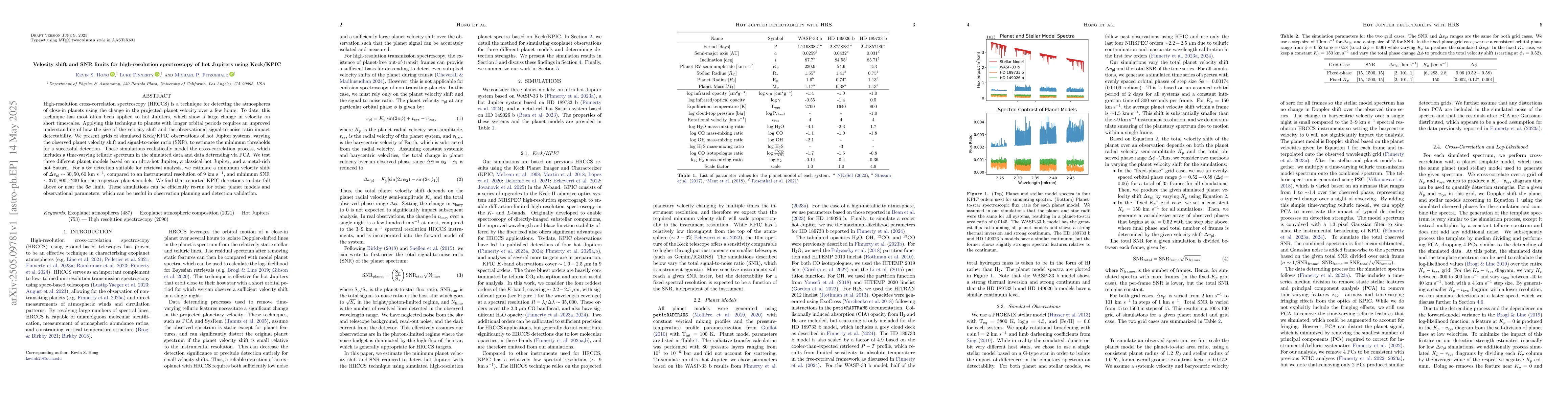 Researchers used simulations to determine that hot Jupiter planets can be detected with a velocity shift of 30-60 km/s and signal-to-noise ratio of 370-1200 for a 6-sigma detection.