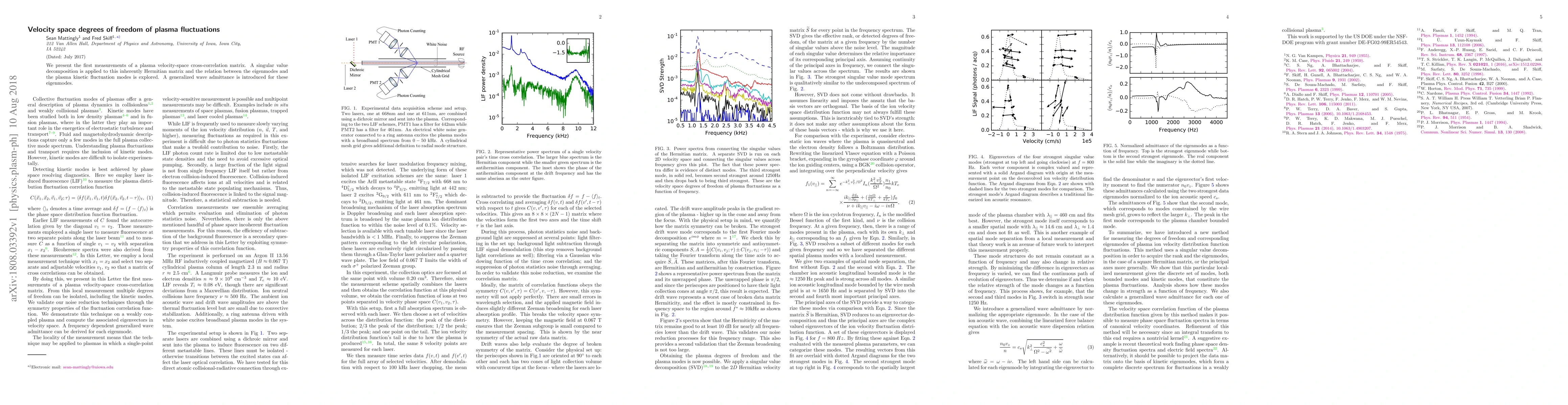 We present the first measurements of a plasma velocity-space cross-correlation matrix. A singular value decomposition is applied to this inherently Hermitian matrix, and the relation between the eigenmodes and the plasma kinetic fluctuation modes is explored. A generalized wave admittance is introduced for these eigenmodes.